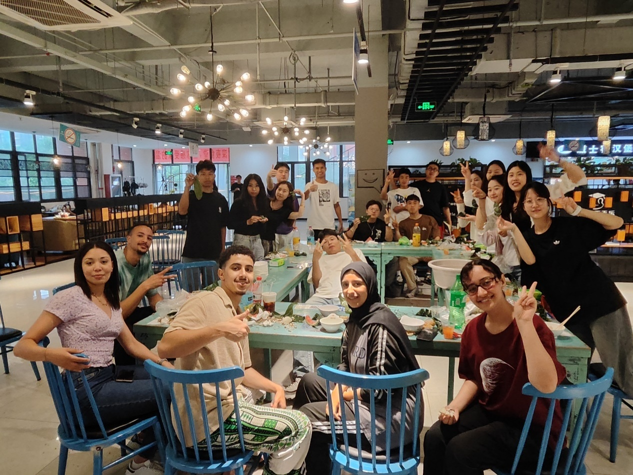 此次活动特别邀请了部分国际留学生一起参与,让他们感受中华优秀传统文化的魅力。大家围坐在一起,折粽叶、填糯米、裹叶子、扎线……一道道工序有条不紊,大家忙的不亦乐乎,互帮互助、欢声笑语,充满了节日的氛围。