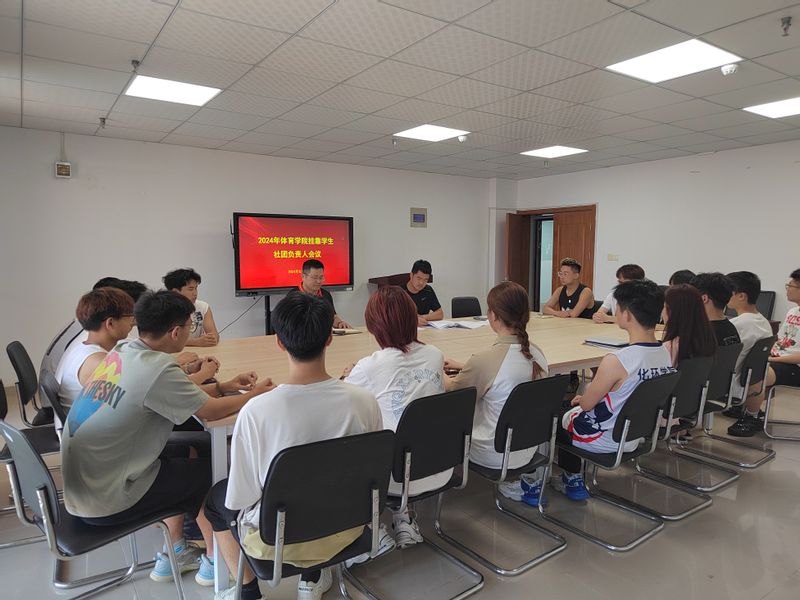 为切实加强挂靠学生社团建设管理,充分发挥学生社团育人功能,6月12日,体育学院挂靠学生体育社团负责人会议在体育学院四楼413会议室召开。体育学院副院长谢叶寿出席会议,校17个学生体育社团负责人或理事参加会议。会议由院团委书记范同军主持。