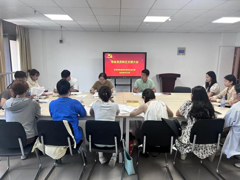 6月18日,体育学院表演专业学生党支部在体院413会议室召开党员大会,讨论张磊等6位同志转为中共正式党员事宜。会议由党支部书记范同军主持,全体党员参加会议。