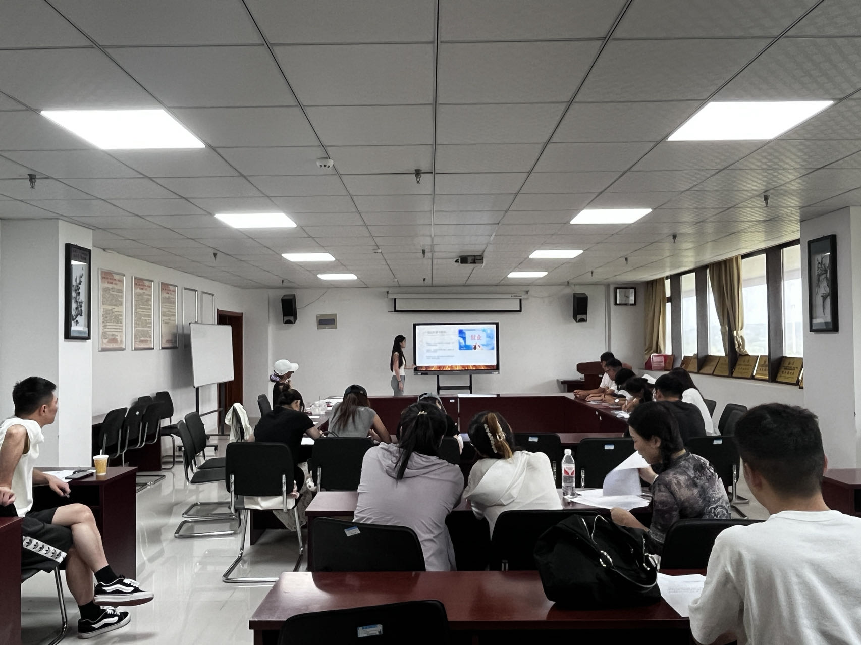 主题班会上,班委们梳理了当前体育领域的就业形势,深入剖析了企业的人才需求趋势及国家对于大学生创业就业的扶持政策,通过一系列详实的数据和生动的案例,帮助同学们对就业形势有了更清晰的认识,理解了政策红利对于个人职业发展的积极推动作用。
