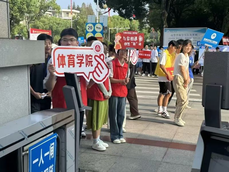 为确保迎新服务工作顺利进行,学院团委学生会精心组织了志愿者服务队,同学们以饱满的热情和周到的服务,在校园内各个角落迎接新生的到来,为他们的大学生活拉开温暖的序幕。清晨的阳光洒满校园,志愿者们身着统一的服装,胸前佩戴着工作牌,早早地在校门口、报到处、对接岗前等关键位置就位,准备迎接每一位新生的到来。他们面带微笑,手持引导牌,耐心解答新生及家长的疑问,从报到流程、宿舍安排到校园生活的方方面面,都一一给予详尽的解答和指引。一句句温馨的话语,一次次贴心的帮助,让初入校园的新生和家长们感受到了体育学院大家庭的温暖与关怀。萌新们纷纷表示,这样的迎新活动让他们感受到了学院的热情与用心,对未来的大学生活充满了期待。
