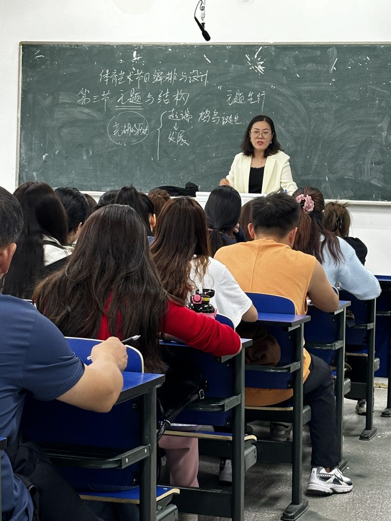 本次观摩课程为徐玲老师主讲的表演专业课《体育表演与创编》,课程主讲内容为主题与结构。徐老师课前准备充分,在结合案例阐释的基础上,通过小组讨论,再对小组方案进行分析,提出修改意见,完善表演结构的创建,从而使学生明确表演与主题结构的关系,利用主题创建举例引导学生正确构思结构的组成,并使其具象化。教学思路清晰、层次分明、重点突出,课堂讲授内容娴熟、授课形式活泼,注重引导,因材施教。每个小组都展示了独特的创意,展现了学生的想象力和团队合作能力,实现了人人参与,取得了很好的教学和示范效果。
