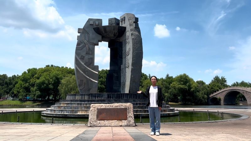 丈量地标,触摸文化育人密码。团队更以脚步丈量校园,解码承载文化基因的地标:图书综合楼:这座56339㎡的“知识殿堂”,以“黄山杯”等荣誉诠释“唯实惟新”的硬核实力。其开放布局与文化展品巧妙融合,让“尚德敏学”在知识汲取中自然浸润。源泉雕塑:立于“艺养风行”景区,以“天圆地方”之姿寓意“智慧源远流长”,将“培育之恩涌泉相报”的感恩教育融入景致,无声传递“尚德”精神。六艺柱:中心广场的“礼乐射御书数”六柱,直观外化“全面发展”的育人理念,激励师生在专业精进同时提升综合素养,与“敏学”精神同频共振。映月桥:横跨碧波的桥影,勾勒诗意画卷。师生漫步其上,于日常景致中感受“唯实惟新”的包容与灵动,让文化成为润物无声的“微课堂”。