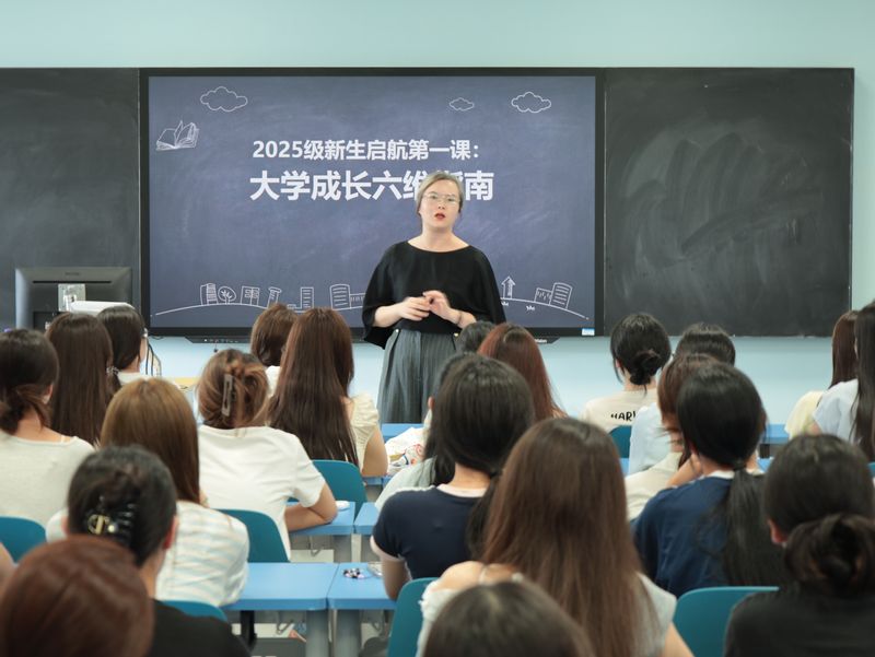 随后,黄蓉静以“大学生成长六维指南”为题开启入学第一课主题班会。她从时间管理技巧、资源获取渠道、心理调整方法等六个维度对新生展开分析讲解,并重点强调了军训期间的纪律要求、安全事项以及运动损伤的预防知识,并鼓励同学们尽快适应新环境,做好学业与训练规划,在未来四年努力成长为德才兼备、体魄与人格并重的体育专业人才。