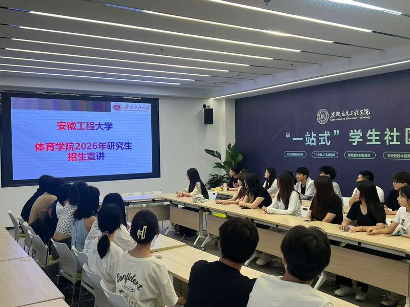 为积极拓展优质生源渠道,提升研究生培养质量,自今年4月以来,体育学院精心组织开展2026年硕士研究生招生宣传工作。学院党总支书记纪天新、院长胡好、副院长金庆红、研究生秘书张航等先后奔赴合肥师范学院、新华学院、巢湖学院、滁州学院、宿州学院、泰山科技学院、安徽师范大学、安徽信息工程学院等省内外多所高校,通过政策宣讲、面对面咨询、交流座谈等形式,全面介绍我院学科特色、师资力量、培养条件及招生政策,与各院校师生进行了深入有效的沟通,吸引众多学子关注与报考。