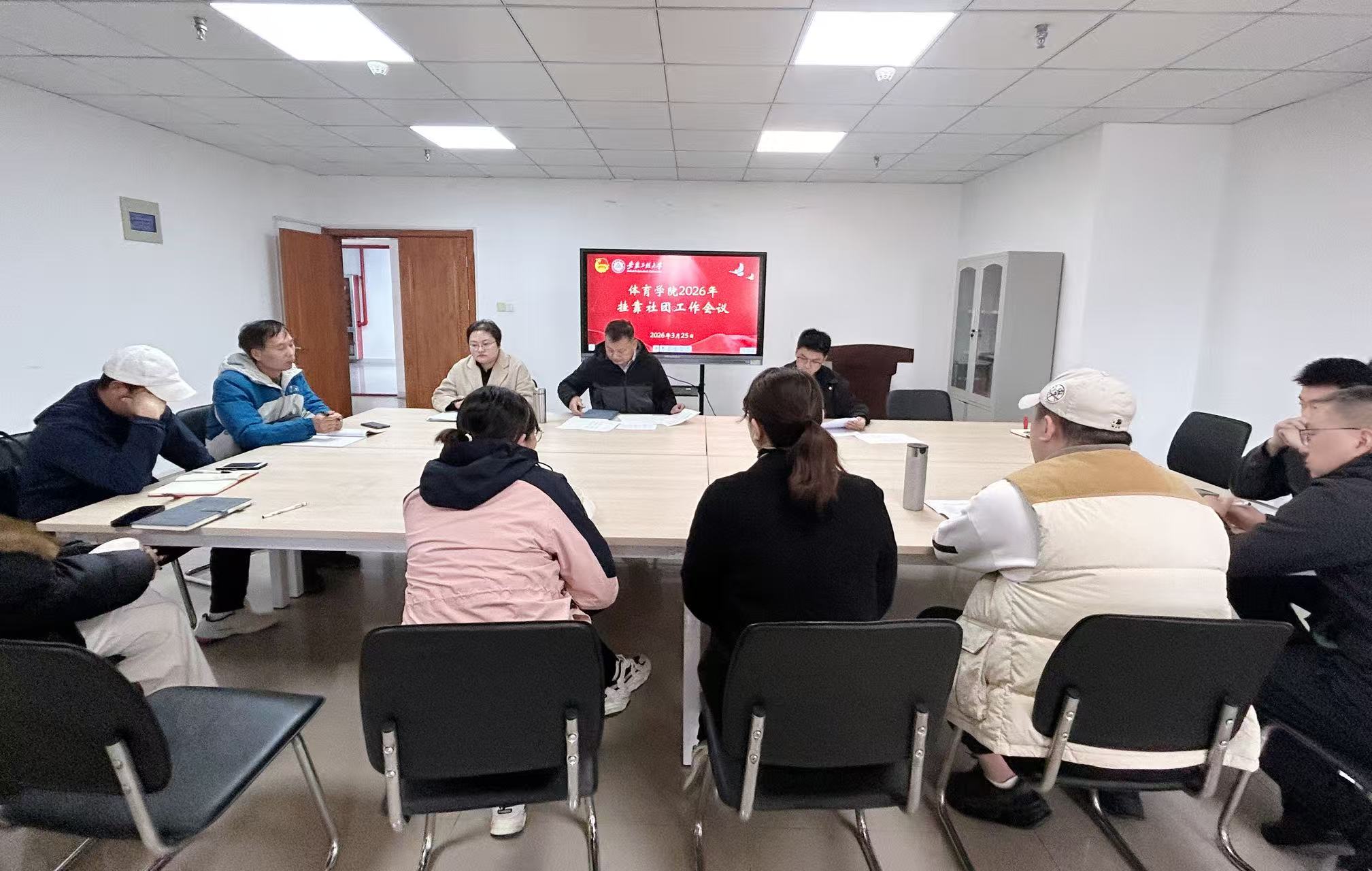 为进一步加强学生社团规范化建设,充分发挥社团在校园文化建设和育人工作中的积极作用,3月25日,体育学院在学院会议室召开2026年挂靠社团工作会议。学院党总支副书记马晓琼、副院长金庆红、团委副书记王康、各挂靠社团指导教师参加会议。