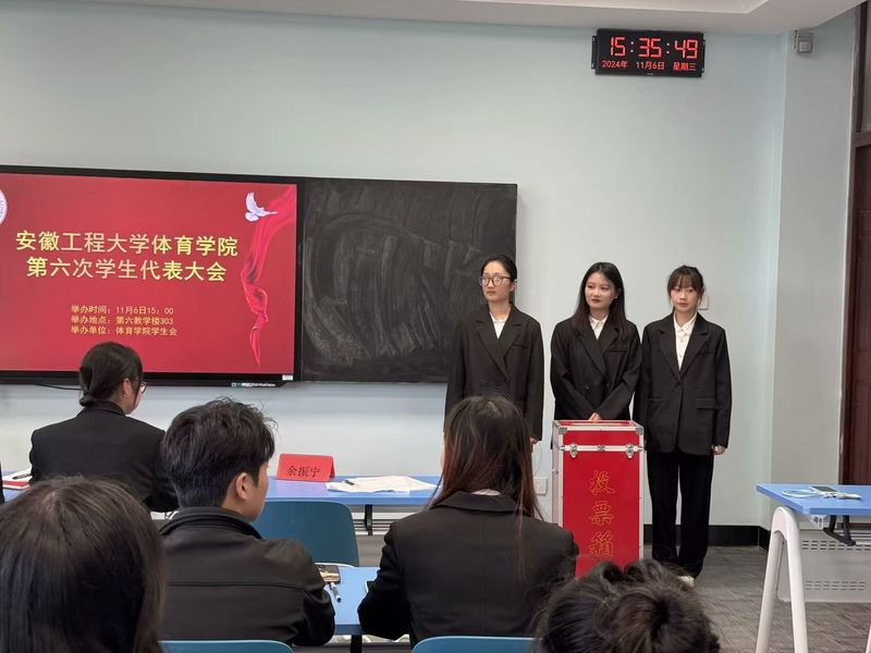 11月6日下午,体育学院第六次学生代表大会在第六教学楼303教室成功举办。学院团委书记范同军、校学生会轮执主席杨扬应邀出席会议,院第五届学生全体委员、第六次学生代表大会41名代表参加会议。会议由院学生会副主席张磊主持。