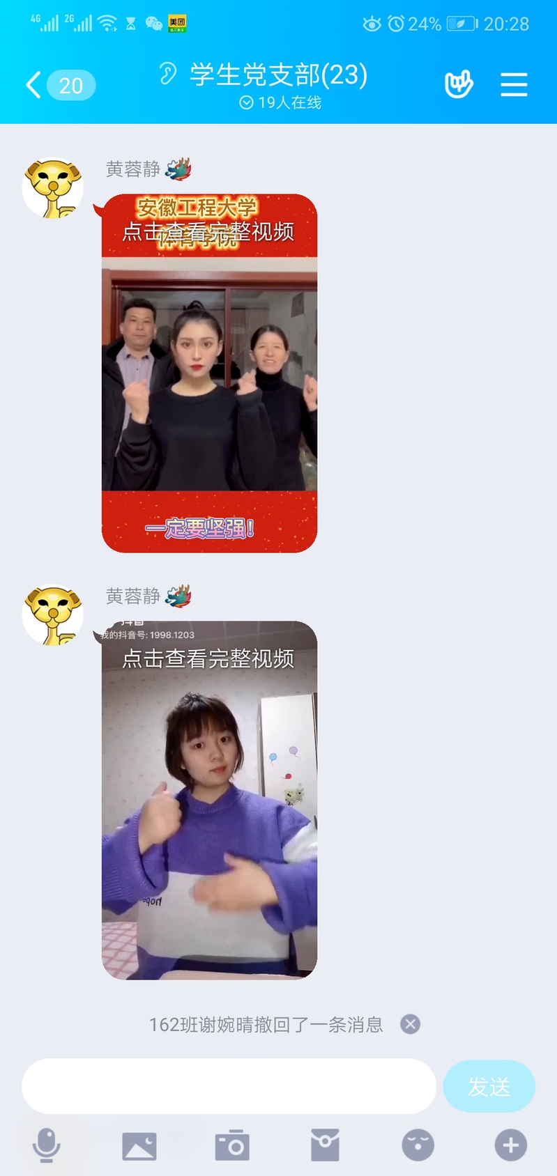 为深入贯彻落实习近平总书记关于抗击新型肺炎疫情的重要指示精神和党中央国务院、省委省政府决策部署,根据学校党委行政的工作指示,在防控新冠肺炎疫情的关键攻坚期,自2020年1月26日起,RayBetApp官网下载 体育学院学生党支部在院党总支带领下,利用网络平台组织学生党员们用行动充分发挥战斗堡垒作用和党员的先锋模范作用。 【文化防疫】在学生党支部书记黄蓉静老师的组织下,学生党员们积极在《学习强国》App上进行每日打卡学习、崇尚学习、加强学习。在吸收丰富的学习内容和资源的同时紧跟党中央步伐,学习习近平总书记重要思想以及理念。另外,黄老师在网络直播中向同学们介绍国家级非物质文化遗产——安徽凤阳花鼓,线上普及知识和传承中华民族优秀传统文化,鼓励大家利用假期延长的时间,学做更加有意义的事情。在疫情面前,抚慰家人和朋友,做到不恐慌,不害怕,相信一线战士,相信国家。