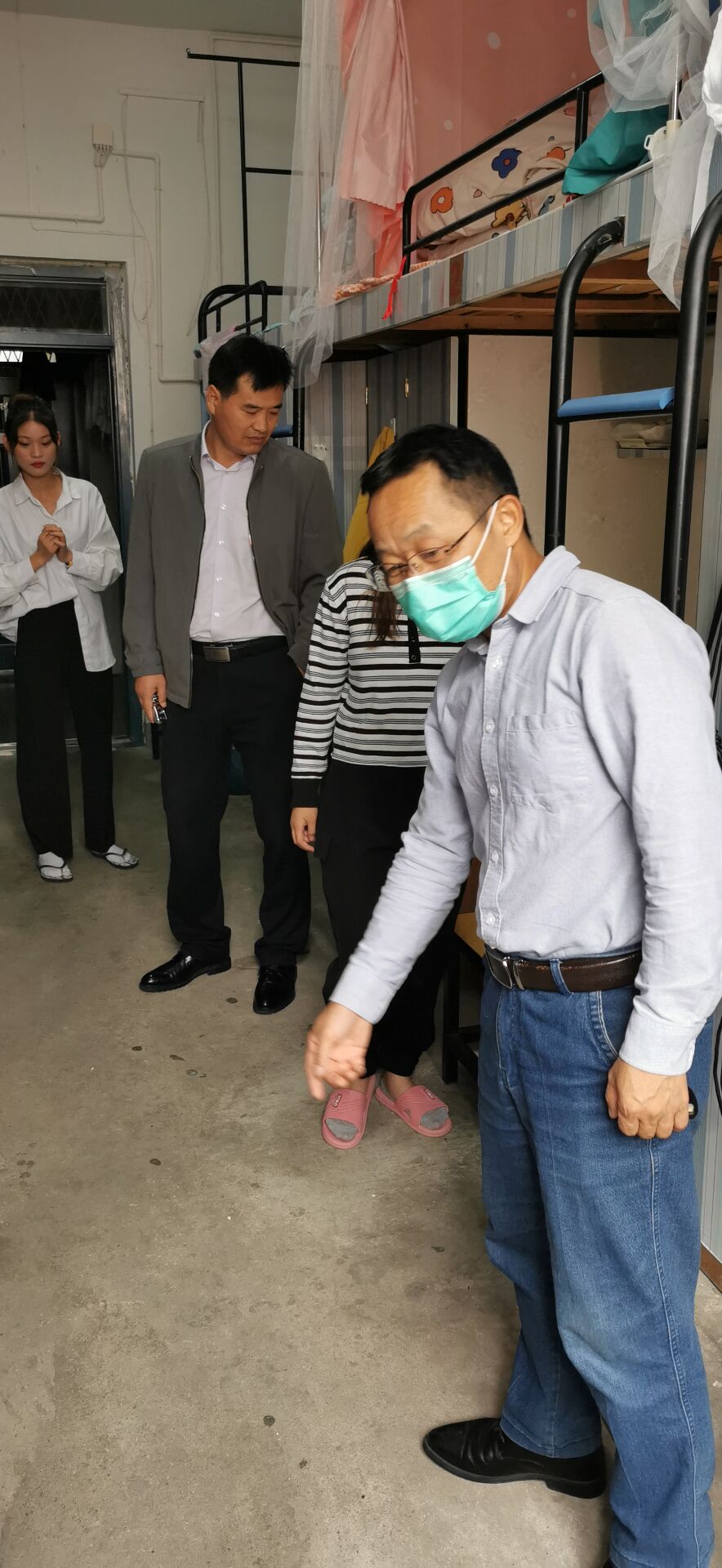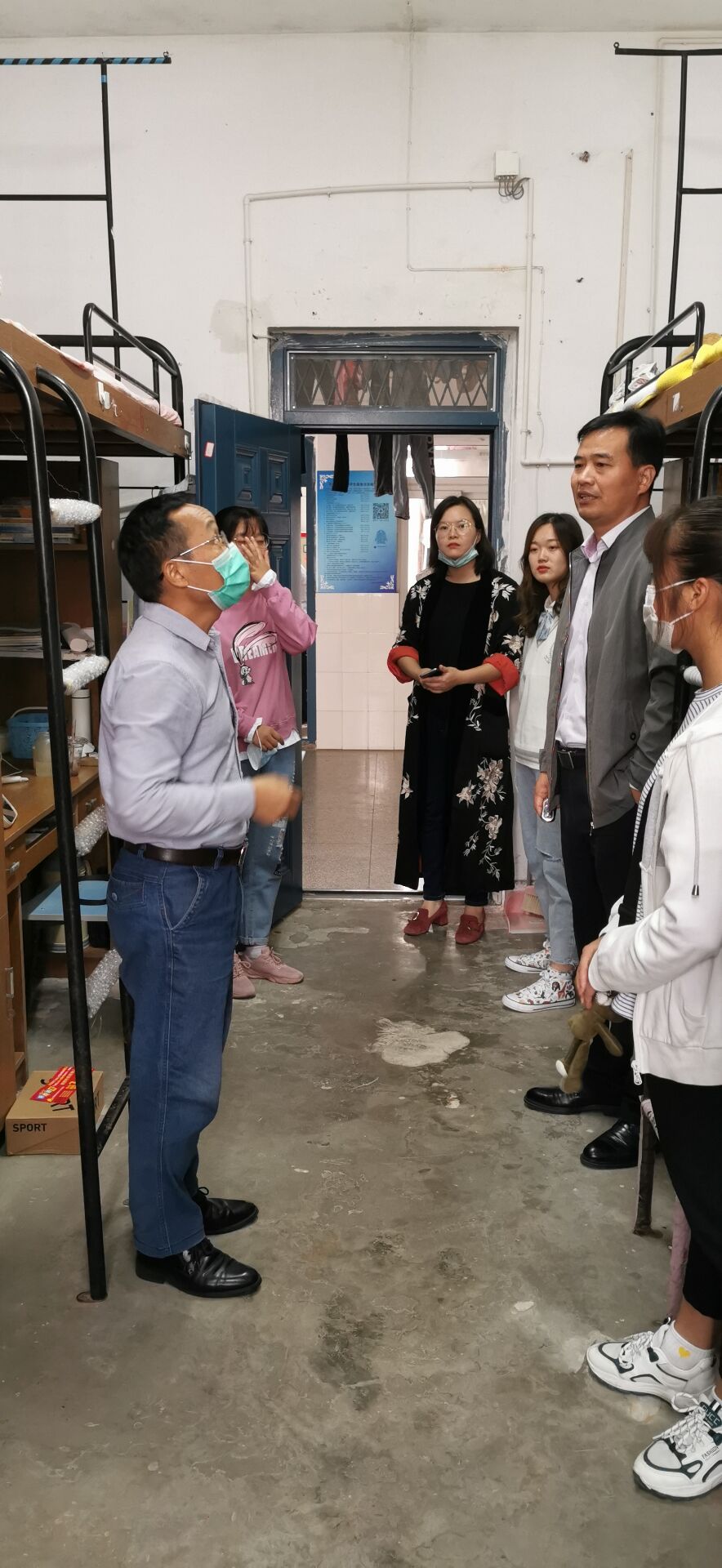 2020年9月24日上午,体育学院党总支书记杨善祥、院长胡好、团委书记孙霞和辅导员黄蓉静,进入2020级新生宿舍,向新到来的学生们表示关切的慰问并提醒学生们注意宿舍安全。 在书记、院长与同学们亲切的交谈下得知,2020级学生大部分来自安徽地区,少量来自河南地区,虽然离家并不是特别远,但是有个别学生流露出思乡之情,学院领导表示理解并安慰鼓励他们多多参加学校的集体活动,到了大学是人生的一次转折,要好好把握机遇挑战自己! 同时,学院领导和老师也在宿舍走访中提醒新生注意用电安全以及宣传防盗防诈骗知识,让新生体会到了家人般的温暖。