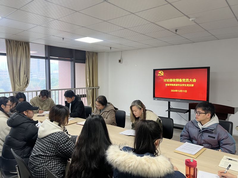 12月11日下午,表演专业学生党支部党员大会在体院413会议室召开,专题讨论接收魏明锐、沈嫣然2位同学为中共预备党员事宜,会议由党支部书记范同军主持,全体党员参加会议。 会议全程严格遵循《中国共产党发展党员工作细则》《安徽省普通高等学校发展党员工作实施细则》以及学校党委组织部党员发展相关规定。会上,发展对象详细汇报陈述本人相关情况,入党介绍人黄蓉静同志全面介绍发展对象有关情况,支部书记范同军同志代表支部委员会报告对2位同志的政治审查情况,与会党员对发展对象能否入党展开充分讨论,并以无记名投票的方式进行表决,一致同意接收魏明锐、沈嫣然2位同志为中共预备党员。