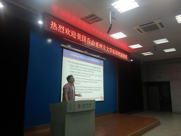 5月2日,知名校友美国乔治亚州立大学教育与人类发展学院终身副教授张琛奕博士应邀回母校,为外国语学院师生作了两场学术报告。