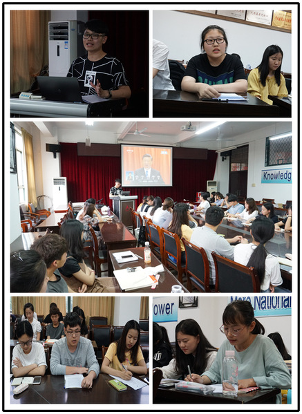 接着,全体成员集中观看了习近平总书记在“纪念马克思诞辰200周年大会”上的讲话。同学们感到讲话思想深刻、内容丰富,受益匪浅。校党的十九大精神学习学生报告团成员李迪和刘谆缘分别以“反腐倡廉,从严治党”和“接续奋斗,开启新征程”为主题谈了自己体会,号召学生骨干要行动起来,守职尽责,加强自身思想和作风建设。