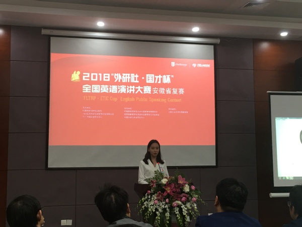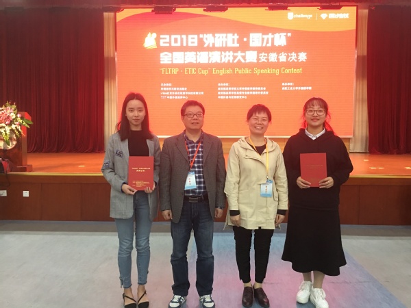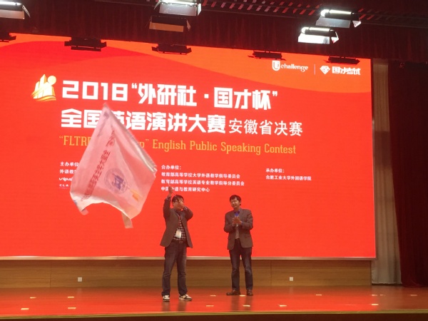 10月26日至28日,“外研社·国才杯”全国英语演讲大赛(安徽赛区)在合肥工业大学举行。外国语学院英语专业16级选手汪珊同学荣获二等奖,生化学院孙梦同学获三等奖,参赛指导教师许庆美和李新国也分别获得相应指导教师奖。外国语学院副院长黄焰结教授应邀作为本次赛事评委,并在大赛闭幕式上,接过了大赛旗帜,2019年“外研社·国才杯”全国英语演讲大赛(安徽赛区)将在我校举行。