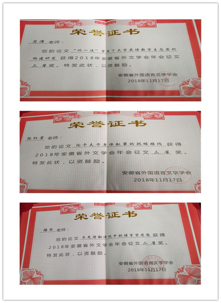 11月16-18日,由安徽省外国语言文学学会主办、安徽师范大学外国语学院承办、外语教学与研究出版社协办的“安徽省外国语言文学学会2018年年会”在安徽师范大学隆重举行。来自全省本科、高职高专院校的200余名外语界专家学者、教师代表出席了本次盛会。我校外国语学院副院长黄焰结教授带领8位教师人参加了本次年会的学习交流和研讨活动。