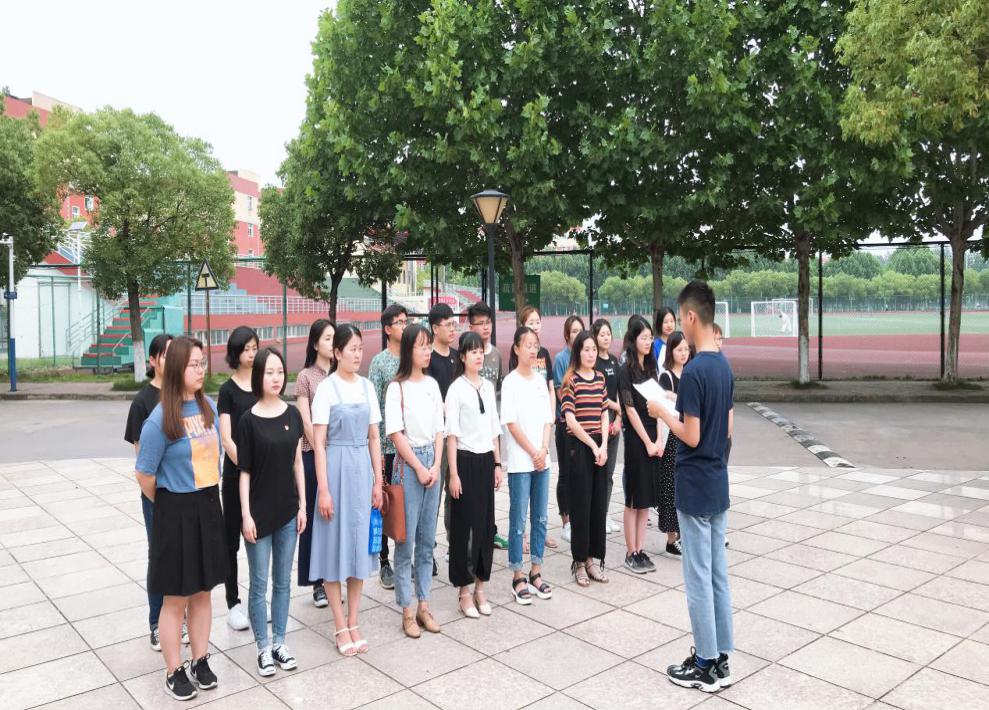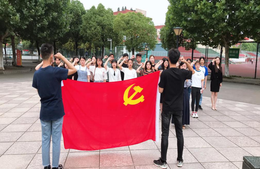 6月17日清晨,随着鲜艳的五星红旗冉冉升起,铿锵有力的国歌余音落地,外国语学院毕业班党员参加完升旗仪式,开展了“不忘初心牢记使命”重温入党誓词主题教育活动。