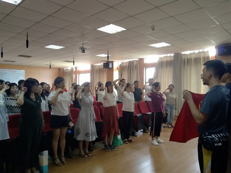学习结束后,全体教工党员面向党旗进行了庄严的宣誓,重温入党誓词。