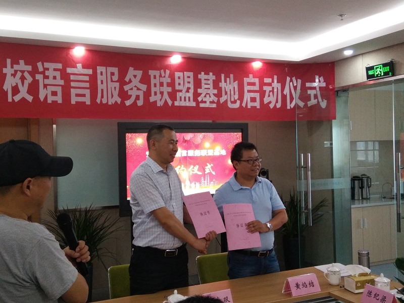7月14日上午,安徽省高校语言服务联盟基地在合肥举办揭牌及签约仪式,全省8所有MTI点的院校及部分在合肥高校的外国语学院领导与教师20余人参加了此次会议,我校外国语学院院长黄焰结也受邀出席会议并与语言服务联盟基地签约。