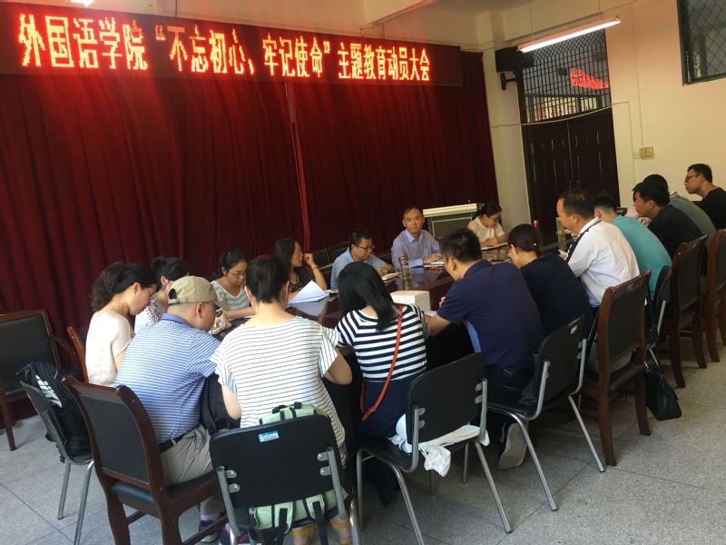 9月18日下午,外国语学院“不忘初心、牢记使命”主题教育动员大会在9J209召开。学院党政领导、中层干部参加了会议,动员会由学院党委书记朱尚玉主持。