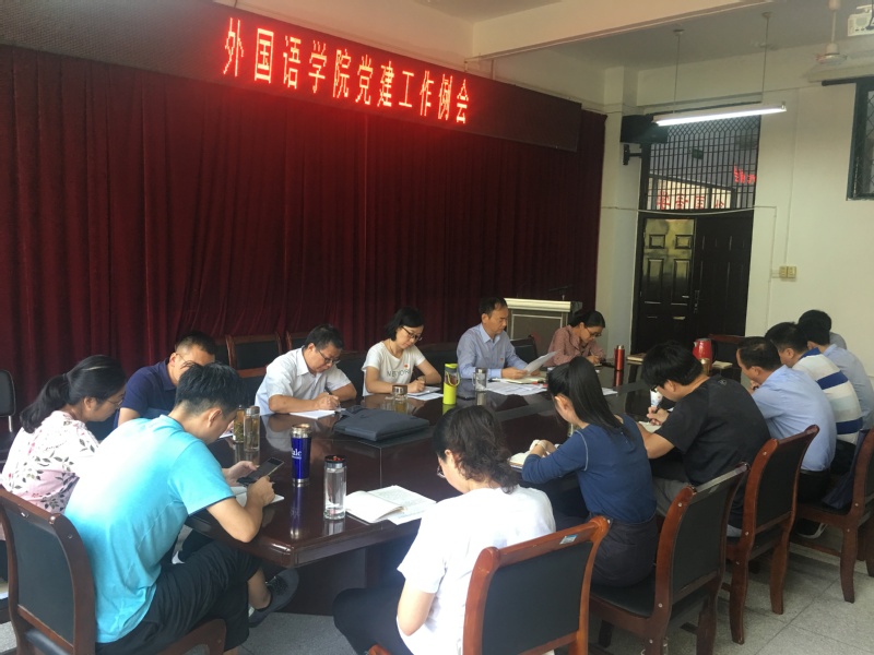 9月28日上午,外国语学院在9J209召开新学期第一次党建工作例会暨“不忘初心、牢记使命”主题教育部署推进会。学院党政领导、办公室主任、组织员、各党支部书记、分工会主席、团委副书记、辅导员等参加了会议,会议由党委书记朱尚玉主持。