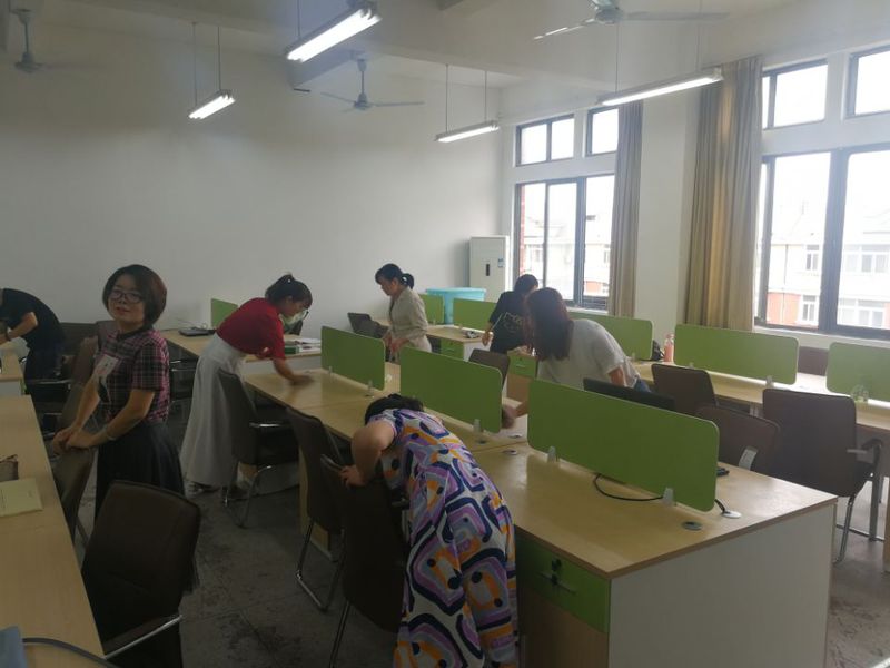 最后,将理论学习落实到为身边群众做实事上。新学期伊始教学部办公室搬迁到五楼,东西多又杂,全体党员同志打扫了教学部及党员活动室的卫生,整理了文件柜中的物品,为全体教师营造出良好办公环境。
