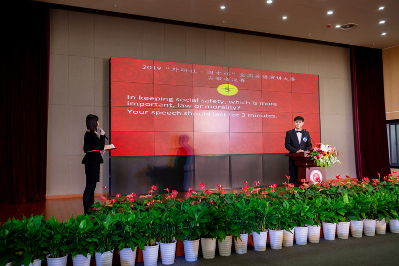 本次比赛吸引了来自全省的优秀选手参加,安徽省教育厅高教处也派出了巡视员进行指导。三大赛事竞争激烈,精彩纷呈,既是对语言能力的检验,也是对知识储备和思维能力的挑战。作为挑战赛的重头戏——英语演讲比赛更是备受瞩目,图书馆2个报告厅场场座无虚席,定题演讲要求以“My Big Story in 2049”为主题从个人角度来阐释中国梦,参赛选手自信从容、神采飞扬、发音准确、口语流利,展现了新时代大学生的风采。即兴演讲环节,选手们对时下的经济、科技、教育、生活、文化等领域的热点话题发表了自己独到的见解,挥斥方遒;在外教问答环节,同学们对答如流,从容不迫。经过两天的角逐,三大赛事都决出了一二三等奖(获奖名单将在教育厅网站公布),其中每项赛事的前三名将代表安徽参加12月份在北京举办的全国总决赛。