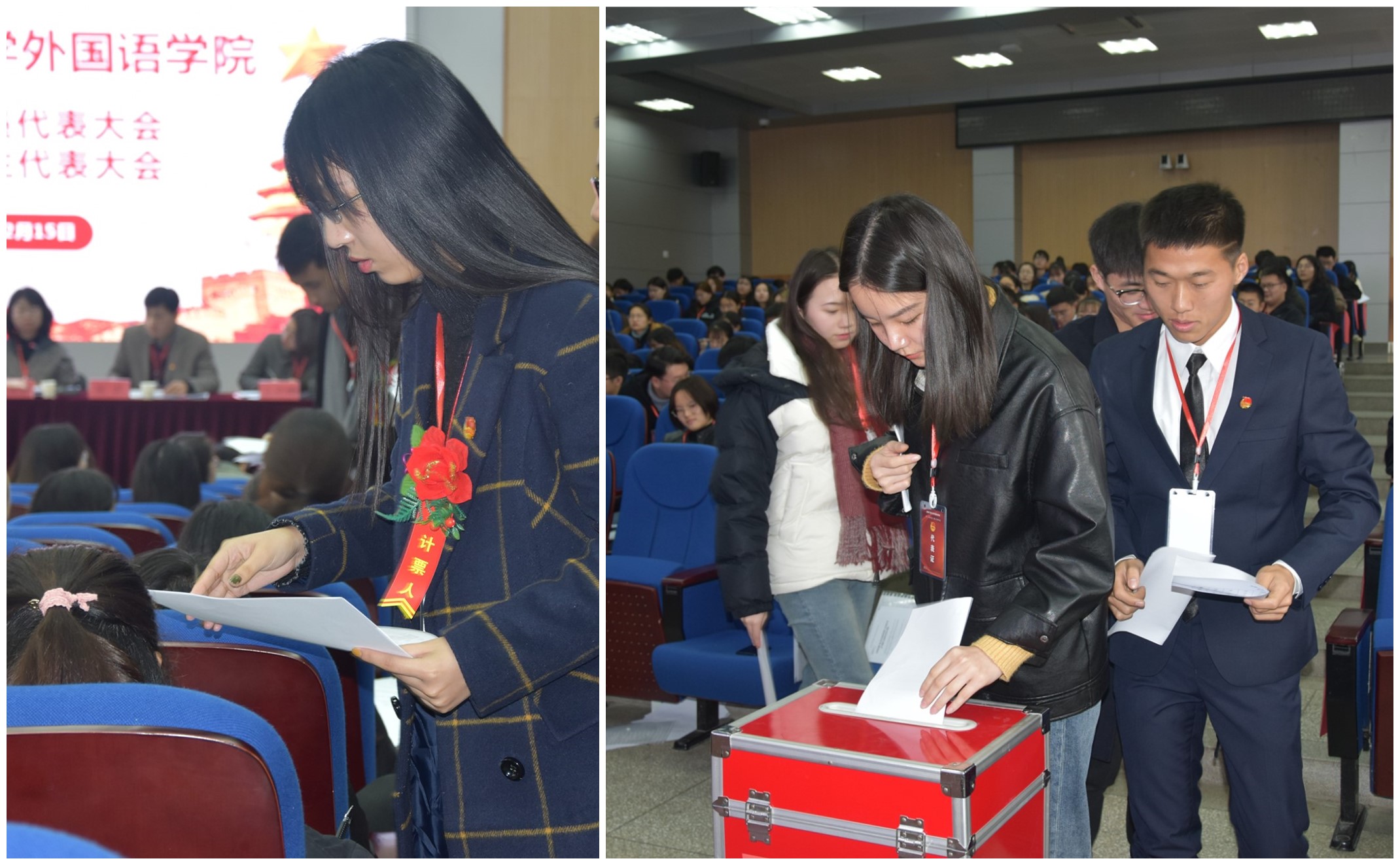 随后,共青团外国语学院第二届委员会第一次全体会议、第三届学生委员会第一次全体会议分别召开,选举产生了新一届团委书记、副书记和新一届学生会主席、副主席。