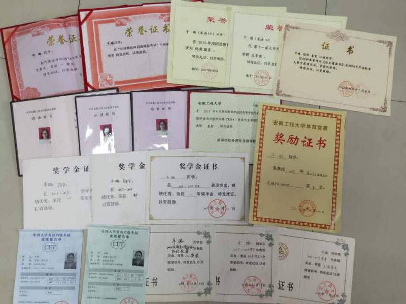 获奖情况:校特等奖学金、校一等奖学金、优秀学生干部、优秀团员、三号学生