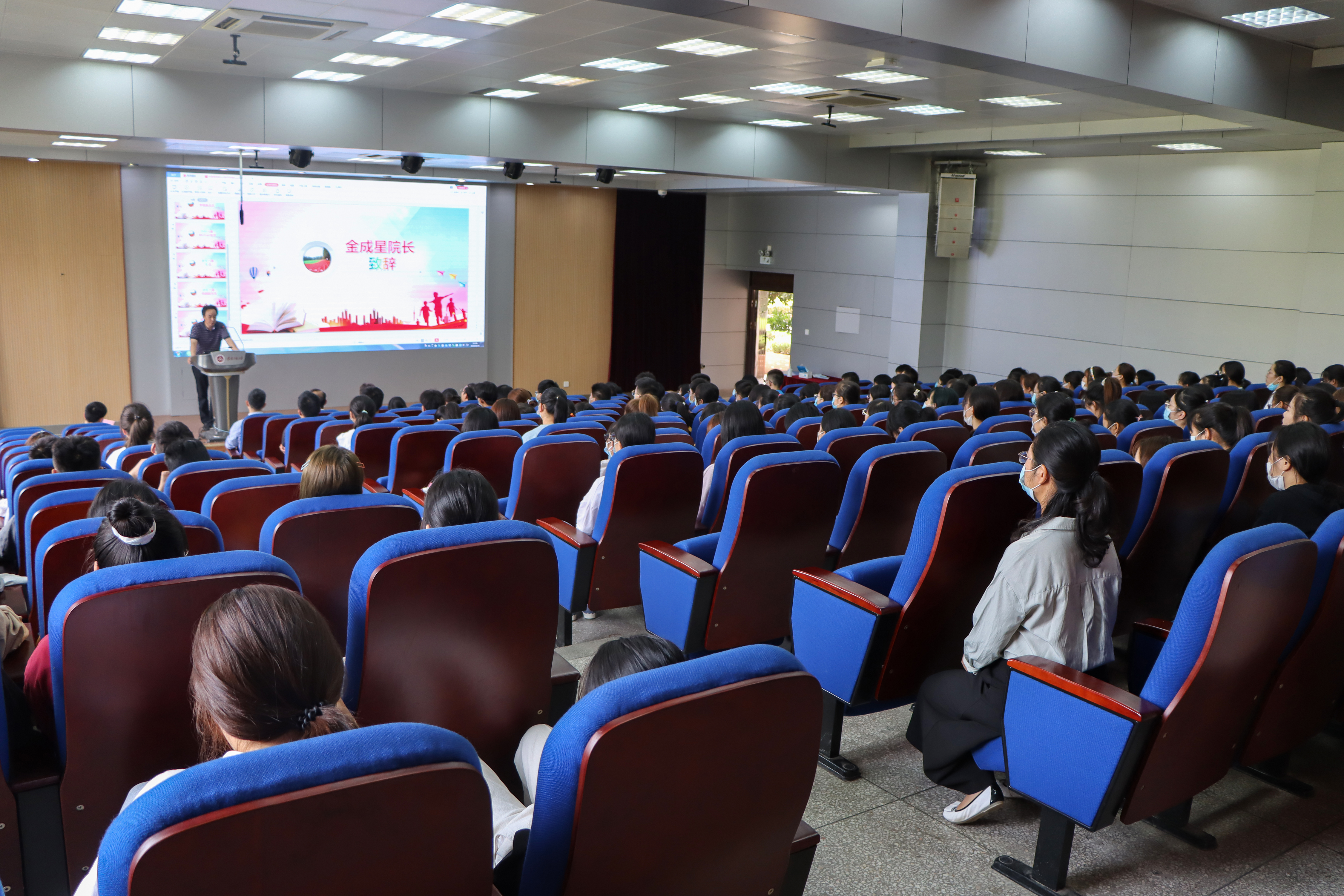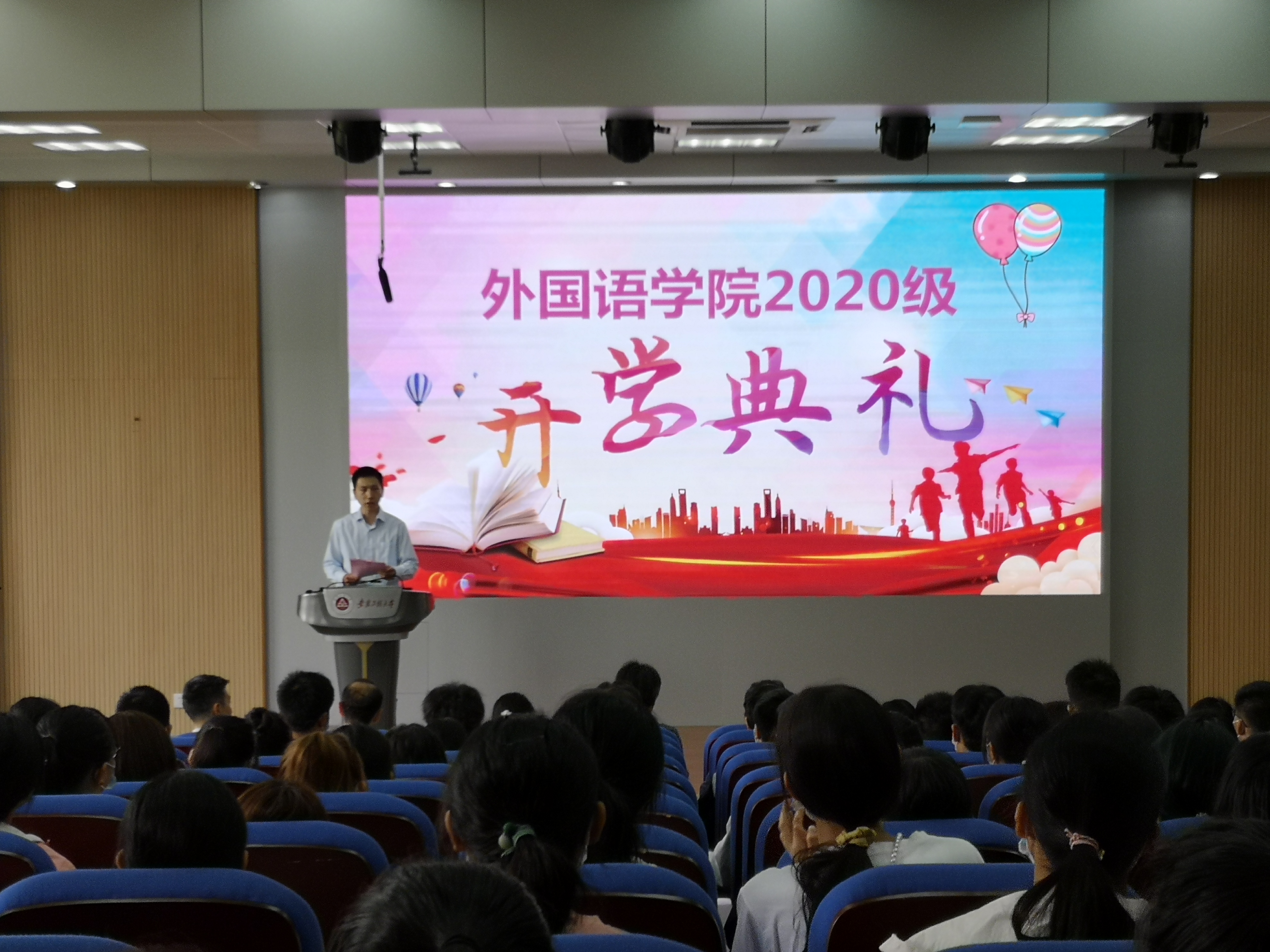 为了让初入校园的2020级新生更快更好地融入大学生活,自9月22日以来,外国语学院扎扎实实开展了一系列新生入学适应性教育。24日上午外国语学院2020级新生开学典礼暨开学第一课在5教117隆重举行,学院党政领导、各系部负责人、教师代表、外教、辅导员以及150名新生共同参加了活动。