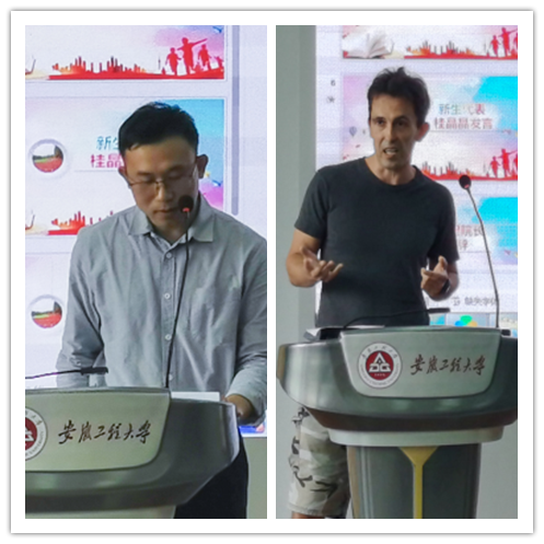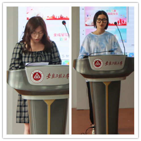 学长代表日语181班左红同学分享了自己大学学习、比赛和实践活动中的种种甘苦,鼓励学弟学妹不怕失败,勇于尝试和挑战自我。新生代表英语201桂晶晶同学讲述了疫情期间刻苦备考的情形和收到录取通知书时欣喜的心情,她表示要拿出坚定的决心和强大的信心,去迎接丰富多彩的大学生活。