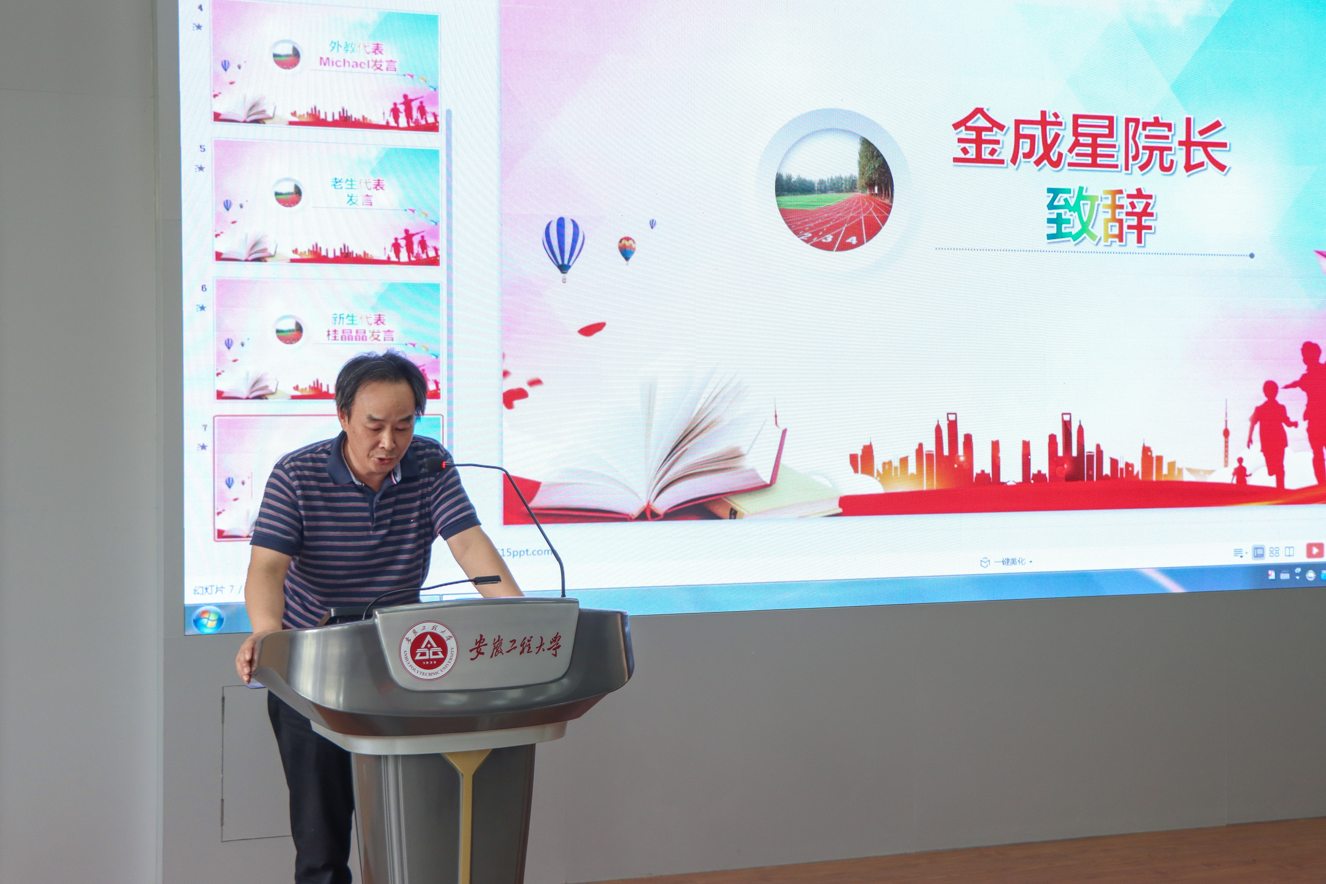 院长金成星致欢迎词,为新生讲授入学“第一课”。他代表学院向2020级新生的到来表示热烈的欢迎和最美好的祝愿,并为同学们介绍了外国语学院的发展历程和获得的成绩。他勉励全体同学在大学期间坚持从四个方面全面发展:要铭记责任,作为新时代的大学生,应该继承中华民族的优秀文化传统,胸怀天下,志存高远,始终把个人发展同国家命运、民族前程紧紧联系在一起,在实现中华民族伟大复兴的历史征程中,激荡起人生的最强音。要坚持立德,大学四年是人格塑造和品性修养的重要时期,希望同学们不仅要学好专业知识,而且要努力提高自己的道德修养,要牢记“尚德敏学、唯实惟新”的校训,以优异的成绩回报家长、回报母校、回报社会。要善学不辍,要满足社会对高水平人才的要求,不仅要努力夯实专业基础,而且要掌握良好的学习方法,告诫同学们要真正的静下心来,多读书多思考,不左顾右盼,不人云亦云,在大学的这片净土上培养自己。要努力实践,“纸上得来终觉浅,绝知此事要躬行”,让知识落地生根,解决实际问题,实践是唯一的通道,希望同学们要保持一颗进取的心,从实践中获取真知,从实践中积累经验,在实践中成就自我。