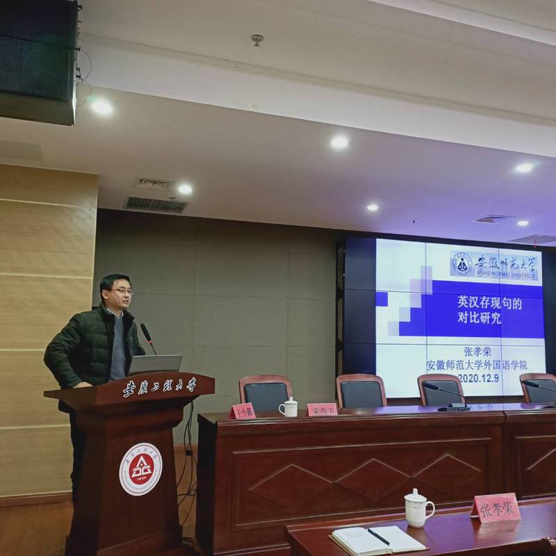 此次研讨主要围绕“大学英语教学新指南解读”,“语言与认知”,“英汉句法对比”,“国家社科基金申报”等主题展开。与会专家探讨学术前沿,分享研究成果,交流项目申报经验。上海外国语大学陈坚林教授对《大学英语教学指南》的研制背景、理论依据、指导意义等做了解读,并就《大学英语教学指南》指导下的教材评价、翻译能力教学、英语写作教学及全球本土化视阈下基于欧框的校本英语语言能力量表研究分享了自己的思考。浙江大学王小潞教授基于前期国家社科重大课题对不同种类汉语非字面语言的认知神经机制的实证研究,阐释了所构建的汉语非字面语言认知加工的“规约层级递进模型”,从跨学科的视角介绍了语言研究的最新动态。安徽师范大学张孝荣教授则从语段理论探讨英汉语存现句的生成机制问题,对英汉语的句式特点进行对比分析,分享了自己在句法研究领域的最新成果。外国语学院金成星教授和唐雪梅教授共同主持了报告会并做了精彩点评。
