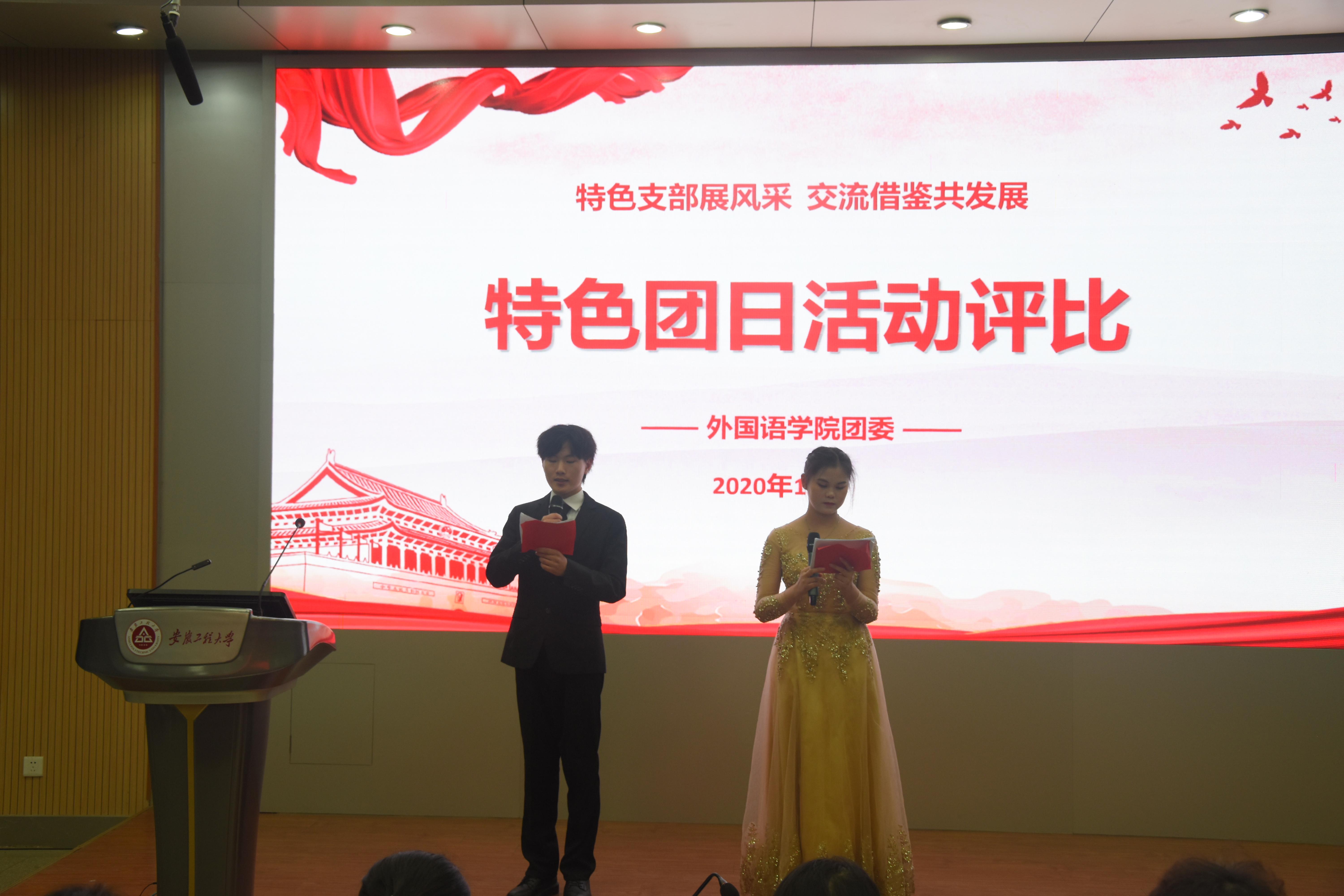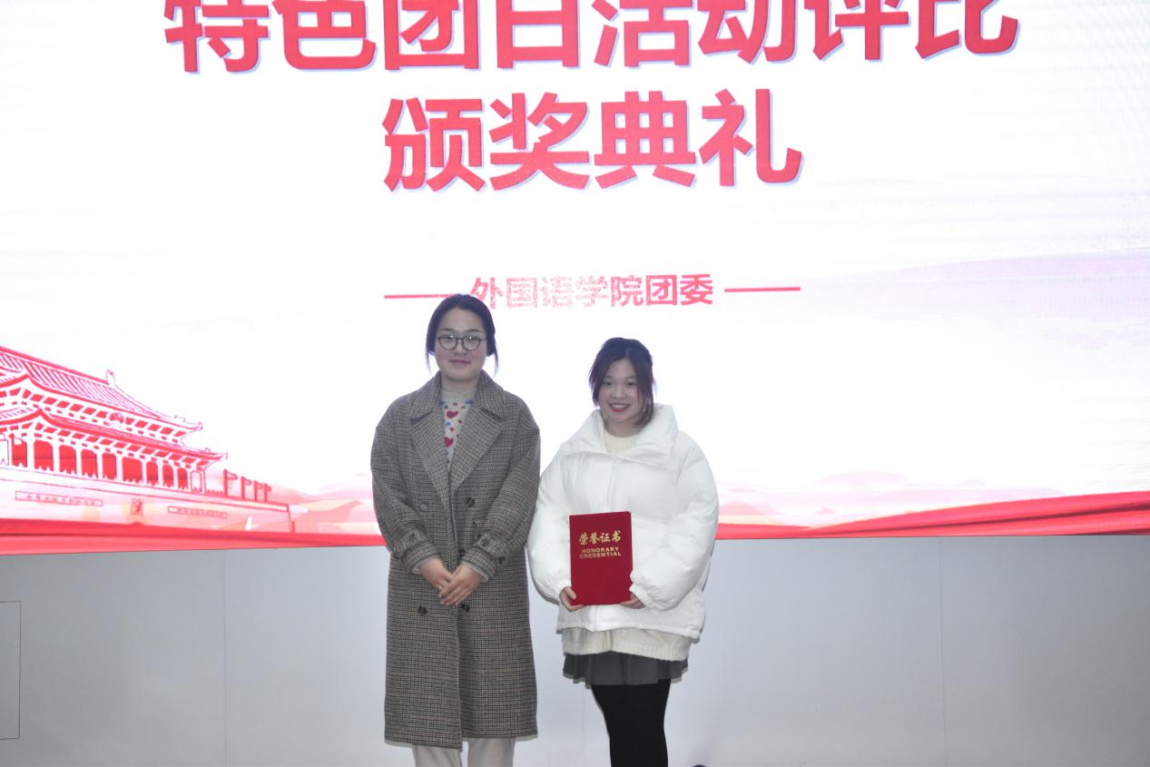 为密切团支部之间的联系,展现团支部的风采,2020年12月16日,外国语学院团委在5教117开展特色团日活动评比大赛。校团委青媒中心指导老师苑雨露、外国语学院团委书记张雅静、数理与金融学院团委副书记汪炜桀和人文学院团委副书记唐叶婷担任评委。最终,日语181团支部获得一等奖,英语182团支部、英语183团支部获得二等奖,英语181团支部、英语191团支部、英语192团支部获得三等奖。