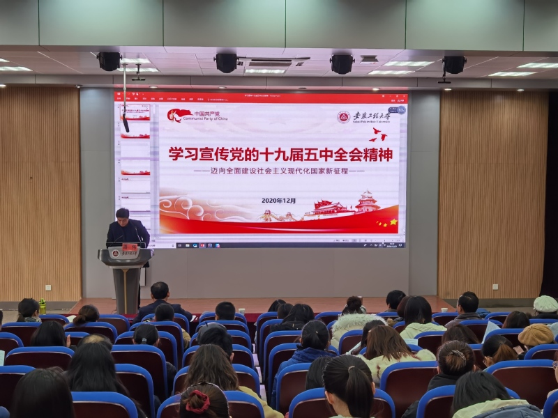 最后,朱尚玉殷切希望各系部、党支部和全体师生要继续组织开展好十九届五中全会精神的学习,并结合实际认真思考和贯彻落实,要求老师们从中寻找研究课题和课程思政的方向,同学们认真学习思考,用世界听得懂的语言,讲好中国故事,发出中国声音。