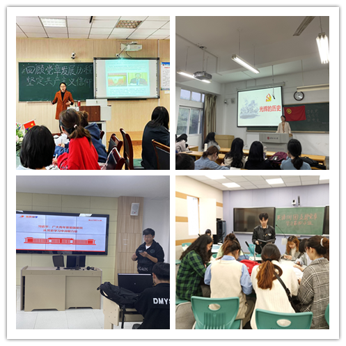 党史学习教育中,外国语学院抓住学生党员、入党积极分子、团学骨干等“关键少数”,构建“书记给党员讲、党员给团学骨干讲、团员骨干给团员讲、团员互相讲”的学习圈。学院党委副书记、团委书记、辅导员纷纷走上讲台,用贴近学生的话语体系讲党课;英语181班的学生党员带领同学们学习党章;英语183班的入党积极分子分享党课学习的收获;各团支部书记在老师的指导下,给团员讲述党史故事,带领团员青年们从党史中汲取精神力量。