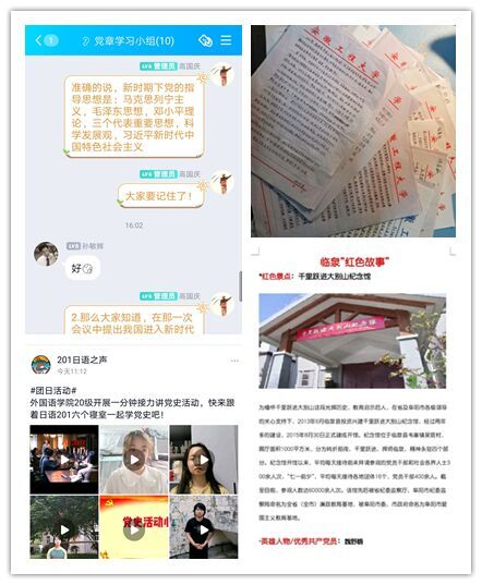 学院各团支部主动创新学习方式,开展主题鲜明、内容丰富的学习活动,推动党史学习教育入脑入心。英语171班的党史知识云竞答、日语181班的编写“党史故事汇”、英语192班的征集“家乡红色故事”、日语201班的拍摄“一分钟讲党史”微视频等活动开展得有声有色。各支部还灵活运用红歌青年唱、观看红色电影、红色景点打卡等活泼的形式,让更多青年在参与活动的过程中学习红色文化、感悟先锋力量。