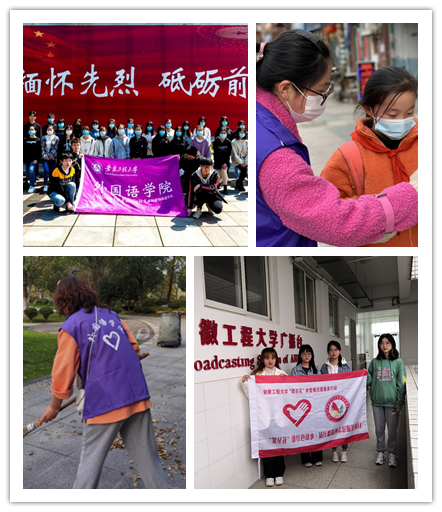 学院团委注重将学习党史同总结经验、立足现实、推动工作结合起来。组织团员青年祭扫芜湖市烈士陵园、参加王稼祥纪念馆,就近就便开展红色教育,在实践中加深对党史的理解。同时积极开展各种志愿服务活动,引导团员青年学史力行以报国。“龙骨花”团队定期在校内以及周边的小学、社区、街道开展结核病防治知识宣讲;“紫阳花”团队为清洁工人送上劳保用品、和他们一起清扫环境;“繁星花”团队和校广播台合作,让讲述红色故事的声音响彻整个校园。