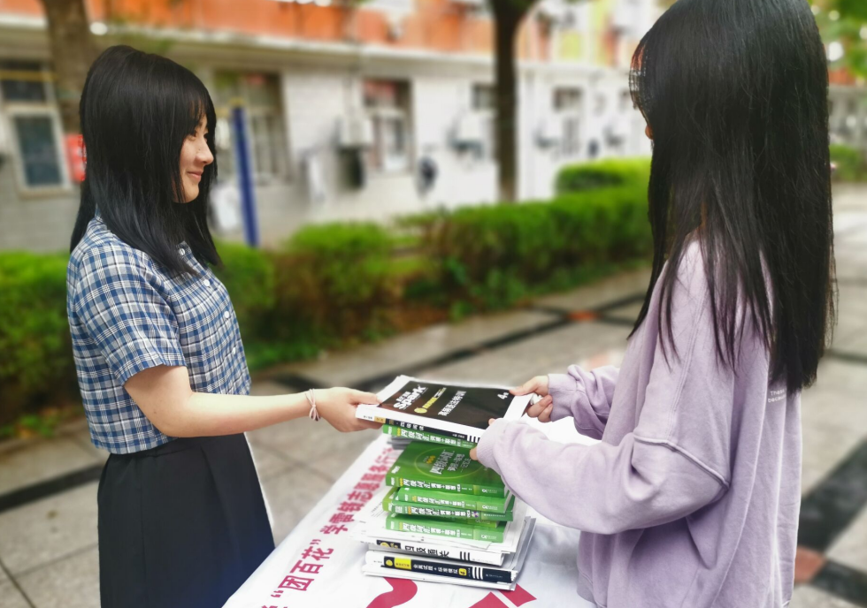 活动吸引了大量学生驻足。团队负责人、英语203班丁恩慧介绍,本次回收英语四六级考试学习资料的志愿活动既为在校大学生提供了一个传递爱心的平台,也促进了闲置书籍的流通、避免了资源浪费,不仅符合建设节约型校园的主题,还营造了书香校园的氛围,很有意义。