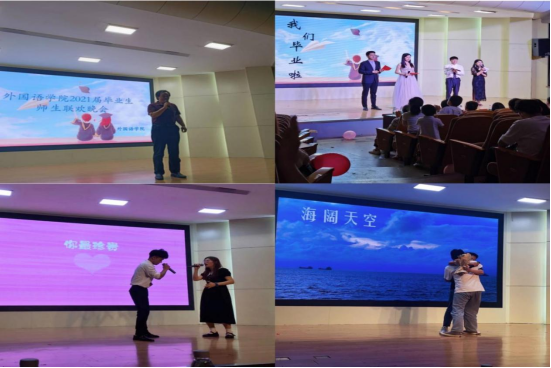 六月,毕业季如约而至。为促进师生情感交流,营造积极活泼的毕业氛围,外国语学院于6月9日晚在学术报告厅举行2021届毕业生师生联欢会,学院党政领导、辅导员和专业课教师参与联欢。院长金成星代表学院全体教职工给同学们送上祝福,祝贺大家顺利完成本科学业的最后一项任务,希望大家毕业后铭记“尚德敏学,唯实惟新”校训精神,脚踏实地建功立业,母校永远是大家坚强的后盾和精神港湾。