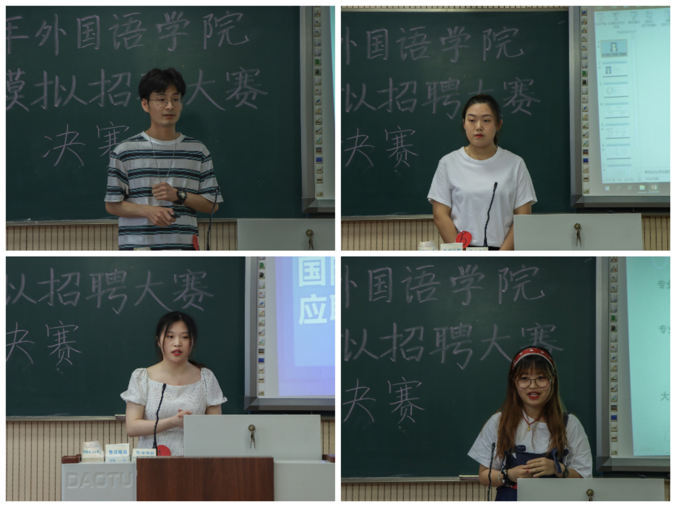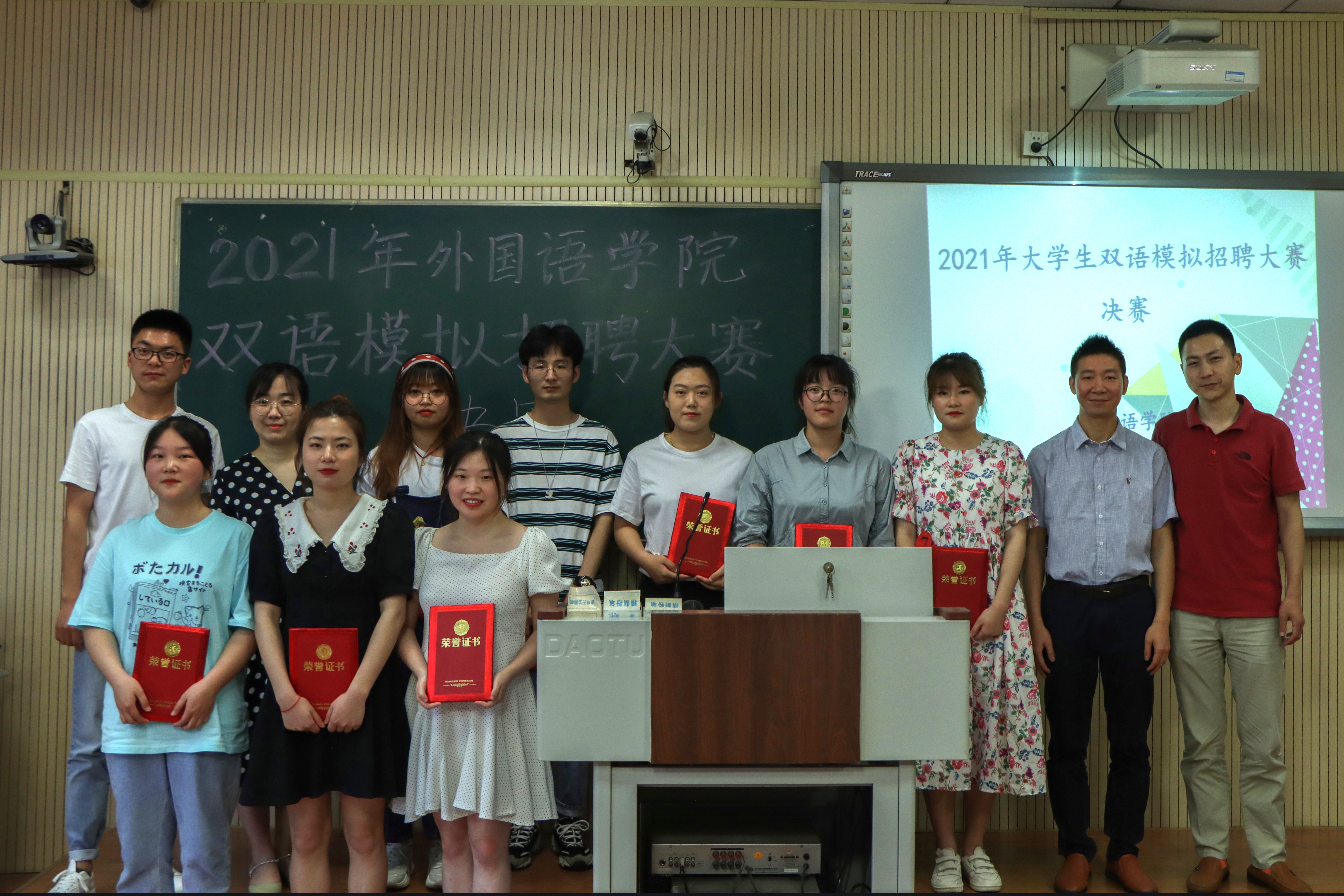 近日,历时两个月的外国语学院2021年双语模拟招聘大赛顺利落下帷幕。本次比赛自5月初启动,旨在帮助学生熟悉求职过程,掌握求职技巧,了解职场礼仪,提升就业能力,增强就业自信。比赛采取四轮淘汰制,分简历评选、双语求职演讲、无领导小组讨论和决赛四个阶段,学院2018级全体学生参加比赛,英语专业、日语专业和兄弟学院的部分教师应邀担任评委。