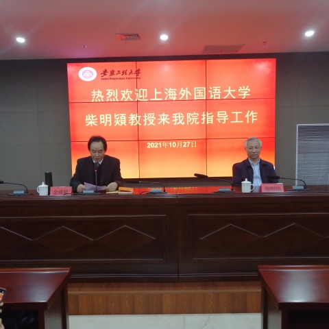 10月27日,全国翻译专业学位研究生教育指导委员会委员,上海外国语大学教授、博士生导师柴明熲教授应邀来外国语学院指导工作。柴教授是上海外国语大学高级翻译学院的创始人,国务院学位委员会第一、二、三届全国翻译专业学位研究生教育指导委员会委员、教育部全国高校翻译专业教学协作组副组长、上海市翻译专业学位研究生教育指导委员会主任委员、中国翻译协会口译专业委员会副主任委员、中国翻译协会教学与科研专业委员会委员、中国比较文学学会全国翻译研究会常务副会长兼秘书长、上海市文联委员,国家社科和教育部研究生教育发展中心审议专家。