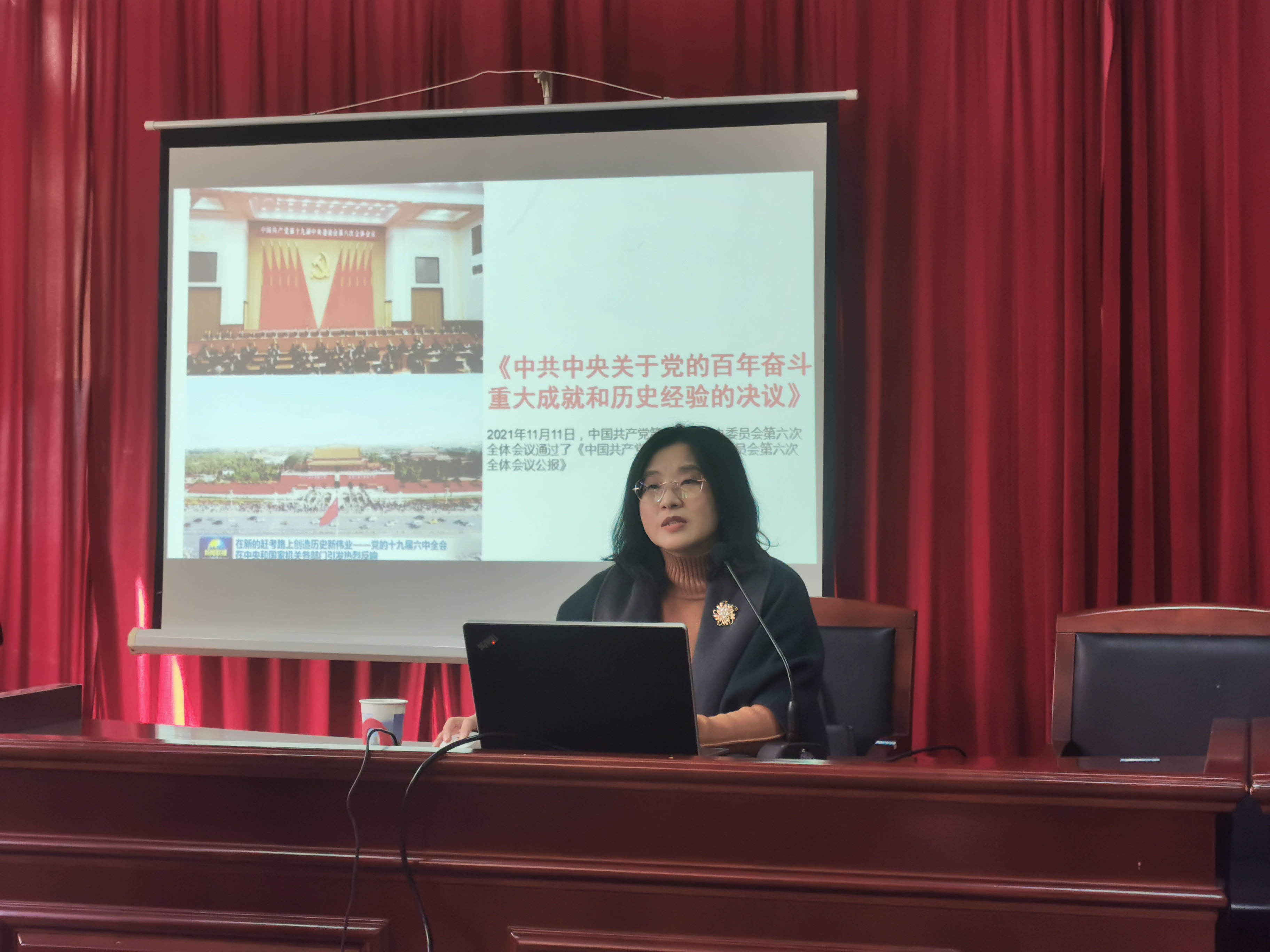 12月22日下午,外国语学院于9教602室召开学院会议,邀请马克思主义学院彭鸿雁教授作题为“以史为鉴开创未来的纲领性文件”专题讲座,全体教职工和部分学生党员参与学习,会议由学院党委书记郑千里主持。
