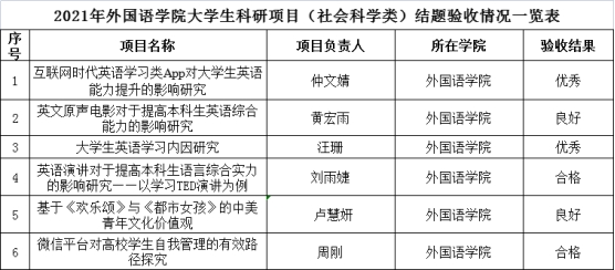 根据科技处《关于开展到期大学生科研项目结题和2022年度大学生科研项目申报工作的通知》,学院组织了2018年以来立项的大学生科研项目的结题验收和2022年度大学生科研项目的申报,现将结果公示如下: