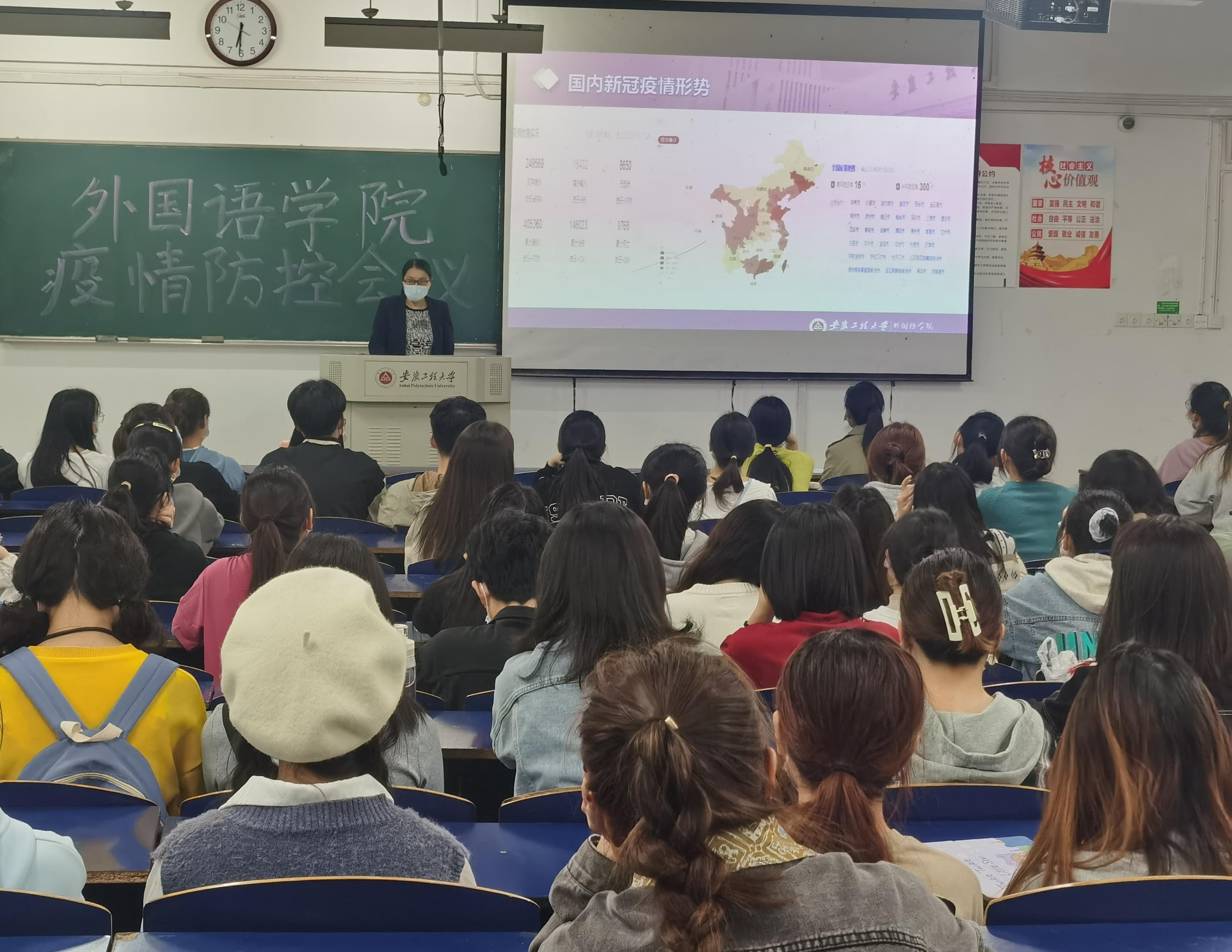 3月15日晚,外国语学院在6教111召开班长、寝室长会议,传达学校新冠疫情暨春季传染病防控工作精神和学院工作要求。学院党委副书记李校林、全体辅导员与各班班长、各寝室寝室长参加会议。
