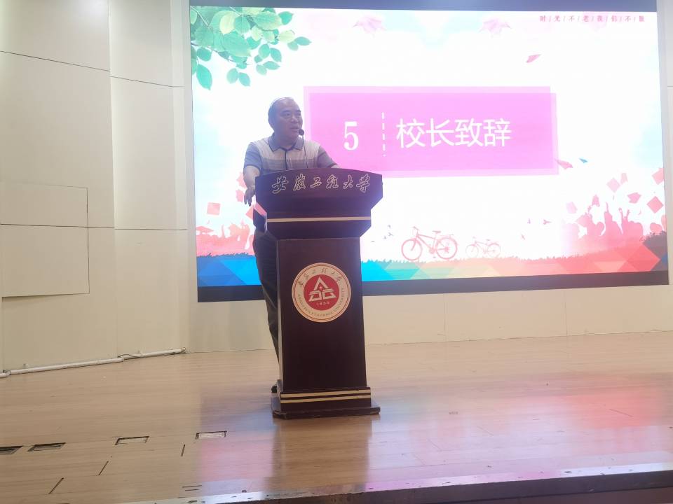 费为银深情寄语全体毕业生,他首先祝贺164名同学顺利完成本科阶段的学习并成功取得学士学位,向毕业生提出四点希望:要坚定信仰,做伟大时代的参与者;要坚守底线,做洁身自好的有德者;要坚持学习,做不断进步的奋斗者;要坚持实干,做脚踏实地的担当者。最后,他用习近平总书记在庆祝中国共产主义青年团成立100周年大会上的讲话金句“青春孕育无限希望,青年创造美好明天”勉励广大毕业生,希望同学们秉承“尚德敏学 唯实惟新”的校训,在青春的赛道上奋力奔跑,努力成长为堪当民族复兴重任的时代新人。