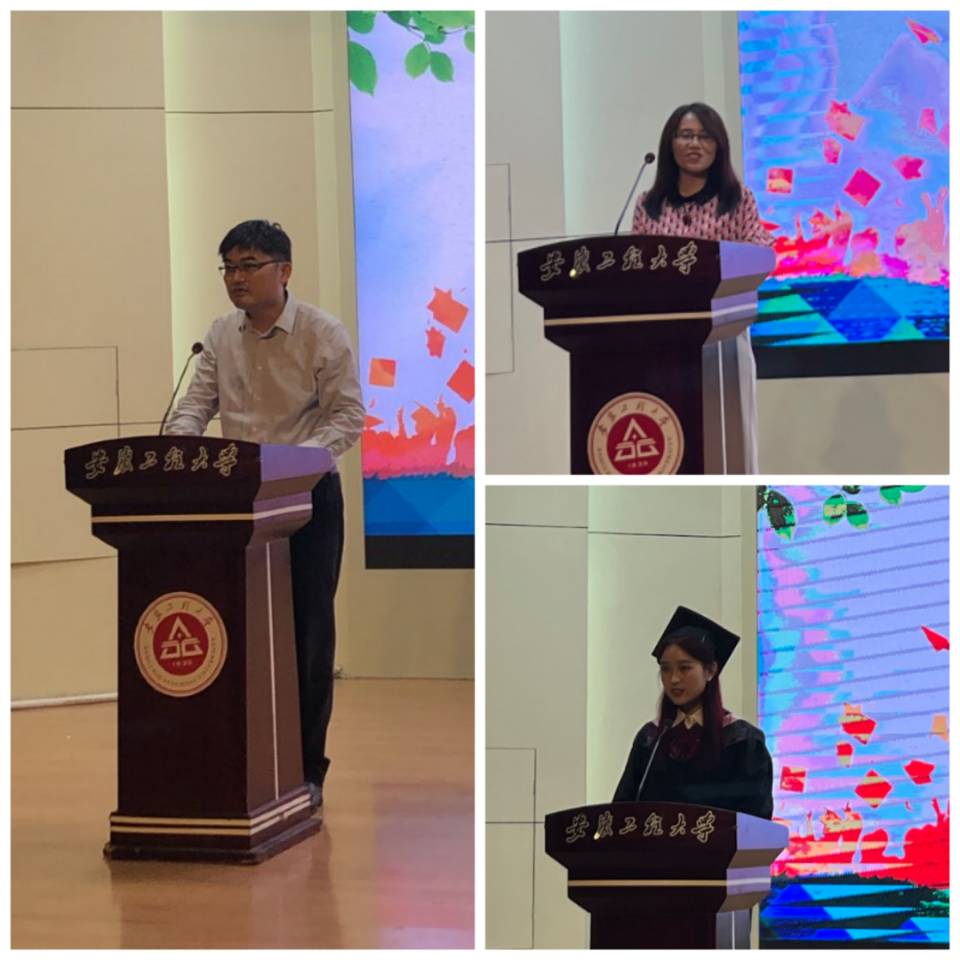 院党委书记郑千里宣读了《关于表彰2022届安徽省普通高等学校优秀毕业生、RayBetApp官网下载 优秀毕业生等先进个人的决定》,希望受表彰的同学再接再厉,取得新的成绩。教师代表韩利敏老师发言,表达了教师对同学的深切期待和美好祝福;学生代表刘晨微同学回顾了大学四年的点点滴滴,畅想了美好的未来并真诚感谢母校对同学们的培养!