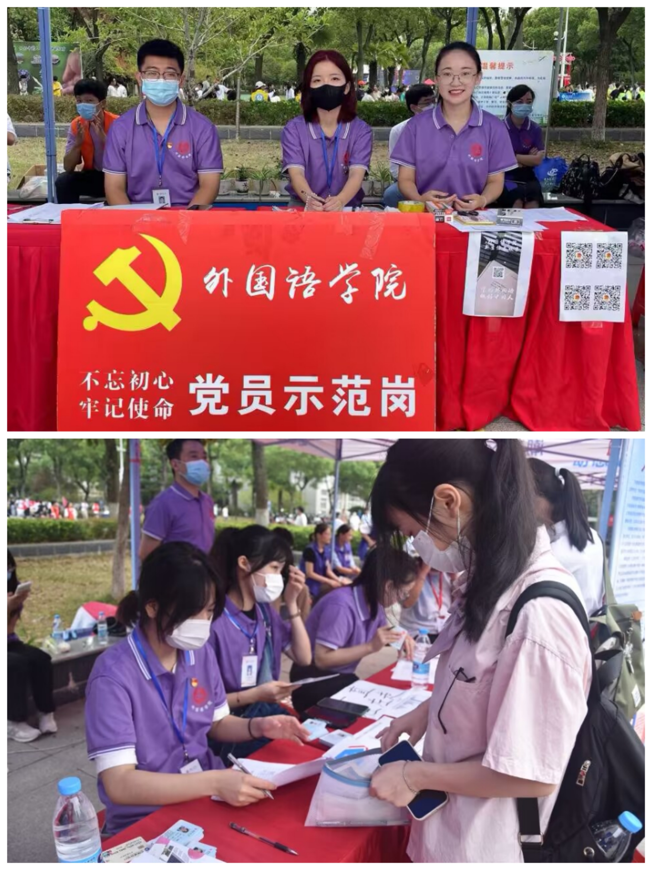 按疫情防控要求,小萌新们告别父母独自走进校园,没有彷徨和失落,“党员示范岗”那道红色风景线给予了小萌新们满满的安全感。“红色党员服务,点滴尽显真情”,党员们充分发挥先锋模范作用,指导办理入学,送上亲切问候,每个迎新流程点都有党员们忙碌的身影。“紫色志愿服务,细节彰显真诚”,无论何时,志愿者们奔走的路上总是爱意弥漫,“放着我来”、“一切有我”,搬运行李、圈存校园卡、介绍校园,身着紫色服装的志愿者们用最贴心最细心的服务让新生们感受学长学姐的温暖与爱意。学院领导、新生辅导员、学长导员以及志愿者们组成的迎新方阵,以最大的热情为小萌新们提供最优化的服务。报到现场虽然微风清徐,但是仍能看到工作人员脸上流淌的汗珠。看着新生报到工作有条不紊的开展,工作人员们都会心一笑。小萌新们一声声地道谢,让工作人员的疲惫瞬间消散殆尽了。