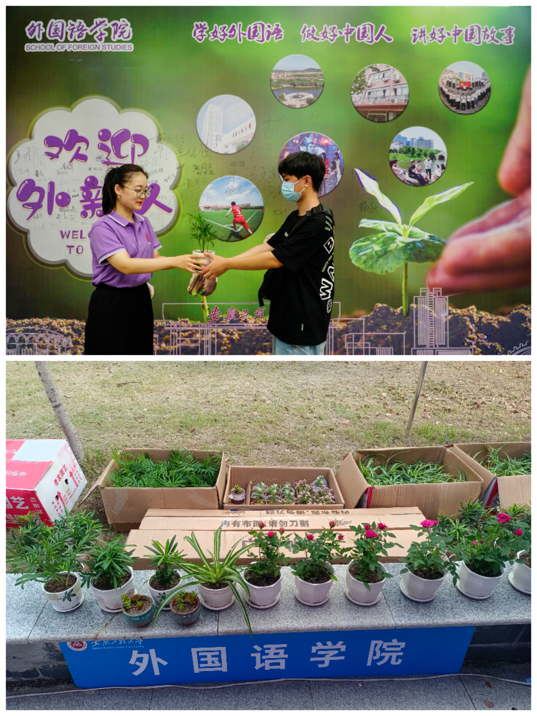 “一颗小苗长成参天大树需要多久?四年还是十年?你不妨亲手培养一株新苗试试”。外国语学院今年为新生们准备了一份特别的礼物——绿色盆栽,玫瑰、吊兰、多肉……,一株株新苗承载着学院对新生们的殷切期望,希望新生在学校这片丰沃的土壤中生根发芽,努力汲取阳光,在知识的熏陶下拙壮成长。新生们将盆栽捧在手心中,期待着它们蓬勃生长,学院将新生们捧在手心中,期待他们早日成才。