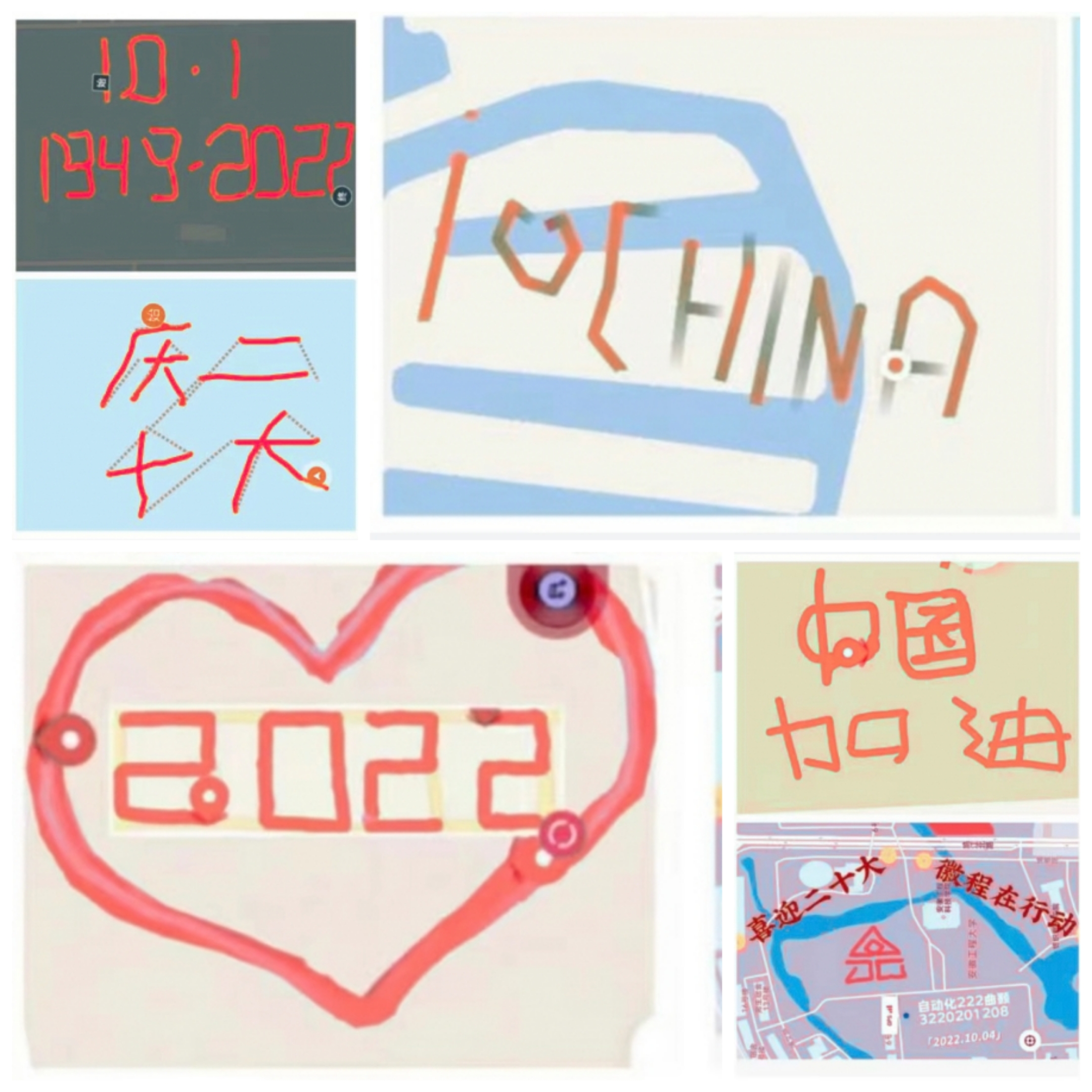 跑出红色图案,告白祖国母亲。为丰富留校学生国庆期间的校园文化生活,10月1日至10月7日,外国语学院举办“青春告白祖国,献礼迎接二十大”创意乐跑活动。活动参与者需要设计出一条具有爱党爱国、喜迎国庆及二十大、疫情防控、保护肺部健康等相关意义的跑步路径,并用运动软件记录跑步轨迹并提交活动图片。活动参与人次达500余人,提交有效跑步图案作品454件。同学们用脚步“绘制”出党徽、国旗、校徽、“中国加油”、“1949-2022”等图案,传递出安工程学子昂扬向上的精神面貌,表达出真挚的爱党、爱国、爱校之情。同学们以这种特别的方式欢度国庆,在愉悦身心的同时也接受了一次爱国主义教育。