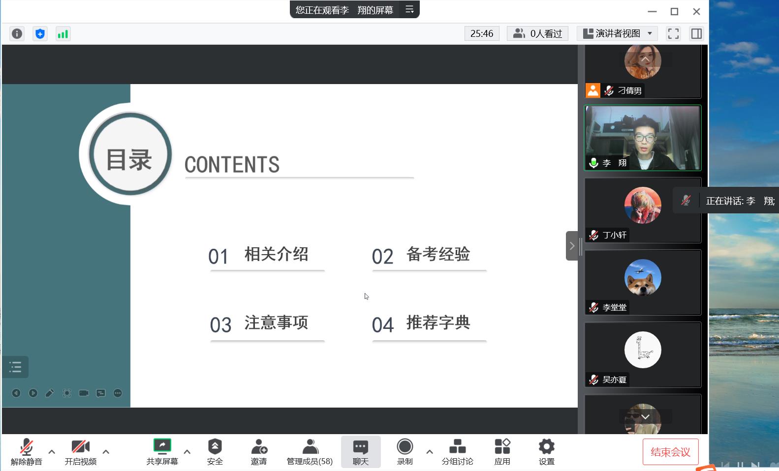 李翔同学的报告内容丰富,信息量大,具有很好的实践指导作用,让同学们印象深刻,受益匪浅。张凤梅和李新国充分肯定了研究生导学支部这次活动对于同学备考CATTI的重要推动作用,要求党员同学要充分发挥引领和示范作用,在支部内外营造良好的学习氛围,带领大家不断提升专业素养,为学院学位点建设和研究生人才培养贡献力量。