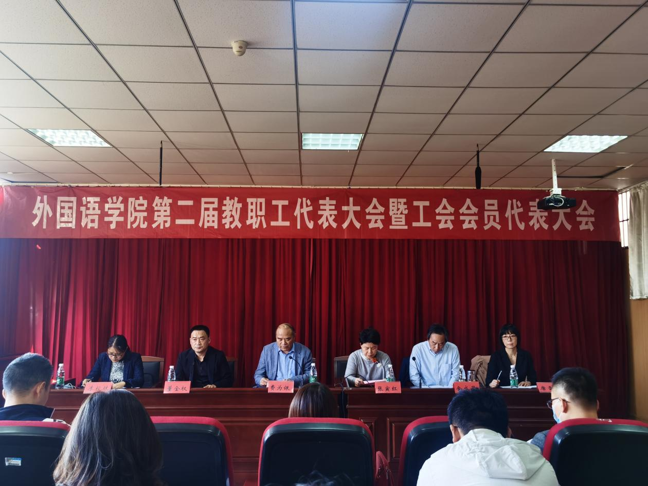 正式会议上,费为银首先代表学校党委向大会顺利召开表示热烈祝贺,向外国语学院全体教职工致以诚挚问候和衷心感谢。他指出,学院在党的二十大召开前夕这个重要而特殊的时刻召开“两代会”,具有十分重要的意义。他强调,学院要认真贯彻落实习近平总书记给北京外国语大学五位老教授的回信精神,加强“两代会”建设,提升民主管理、民主监督质量,为落实“立德树人”根本任务,实现人才培养目标提供重要保障。他对学院下一步工作提出四点建议,一是要发扬党内民主,规范工作程序;二是要加强党委领导,各级协同发力;三是要完善制度修订,增强管理效能;四是要增强责任意识,注重作用发挥。他希望全体教职工以高度的政治责任感和主人翁精神积极参与,把这次大会开成一次发扬民主的大会,团结奋进的大会,鼓舞人心的大会。希望新一届学院教代会执委会和工会委员会全面履行工作职责,在学院党委统一领导下,不忘办学初心,牢记育人使命,以更加饱满的工作热情和更加坚定的信心决心,迎接党的二十大胜利召开,全面推动学院各项事业再上新台阶,为学校更高层次发展贡献学院力量。